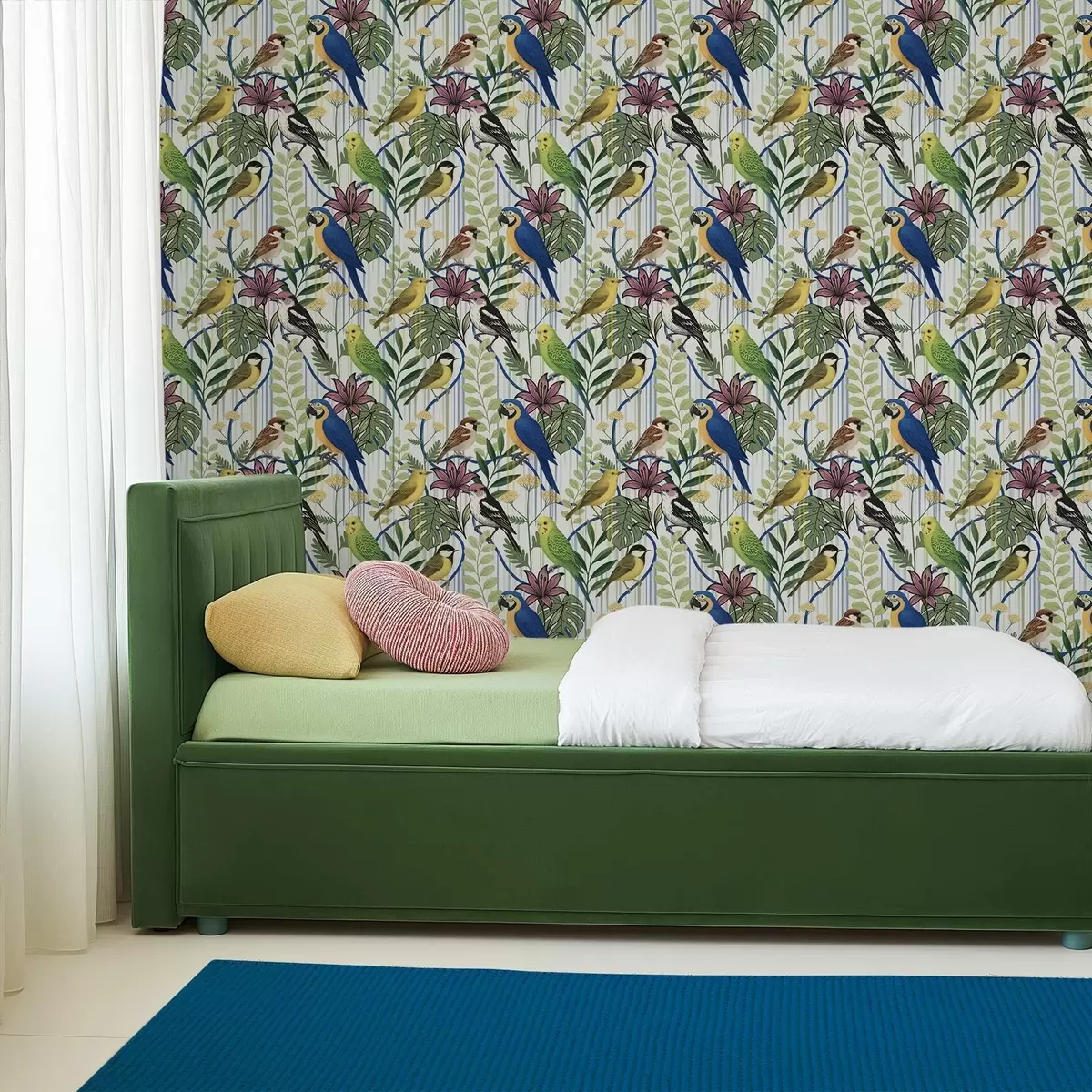 Tapeet Eksotilised värvilised linnud troopilise roheluse keskel Nr. a00887
