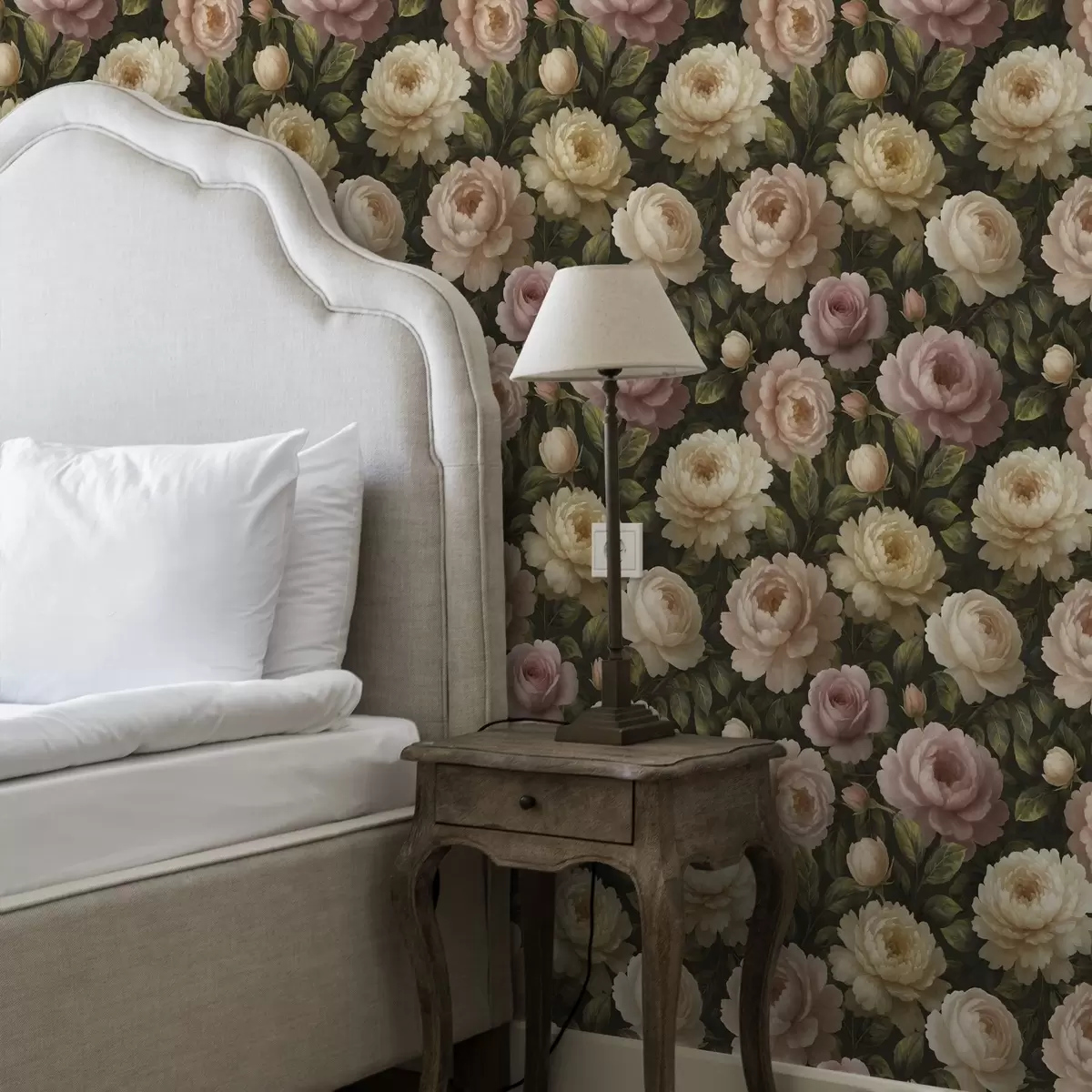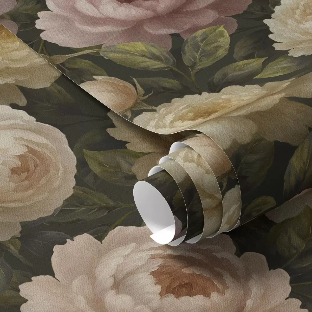 Tapeet Romantilised peonid tumedal botaanilisel taustal Nr. a00893