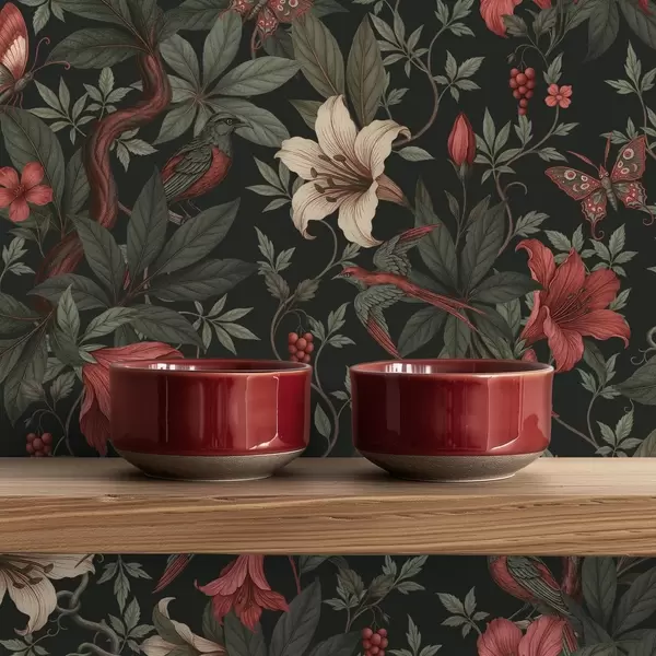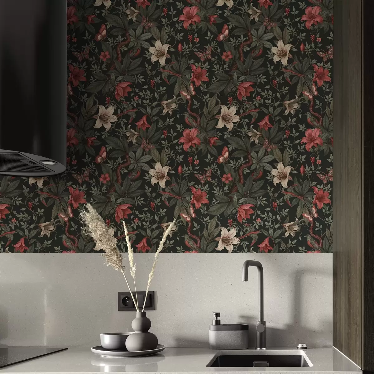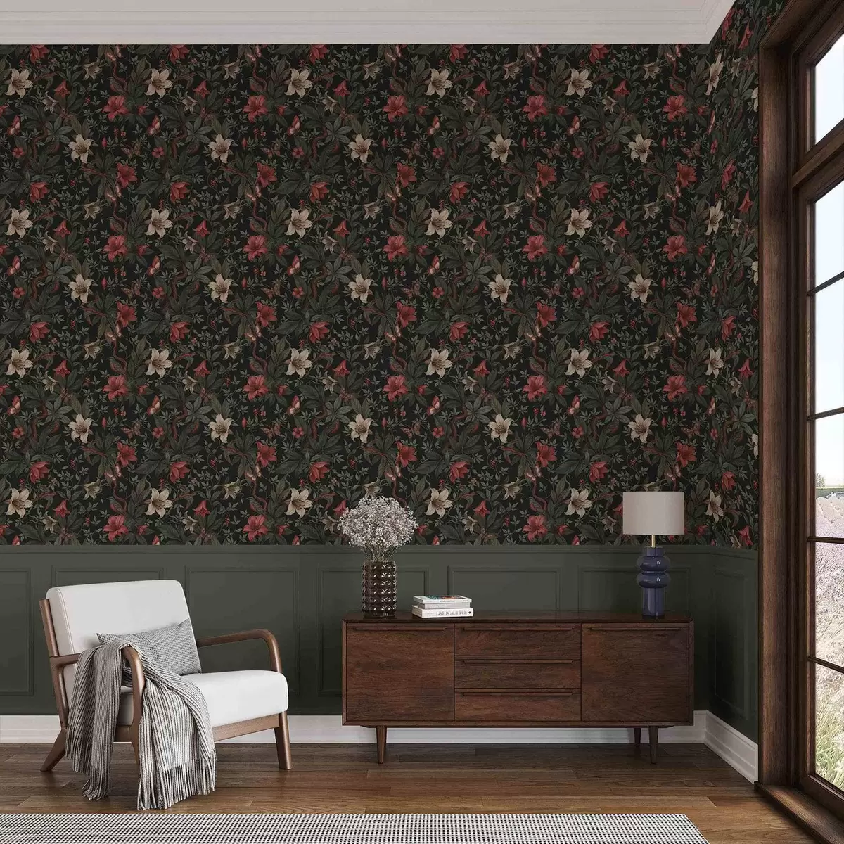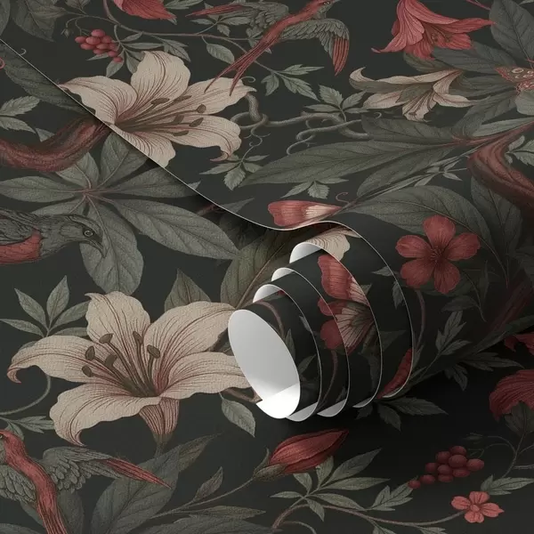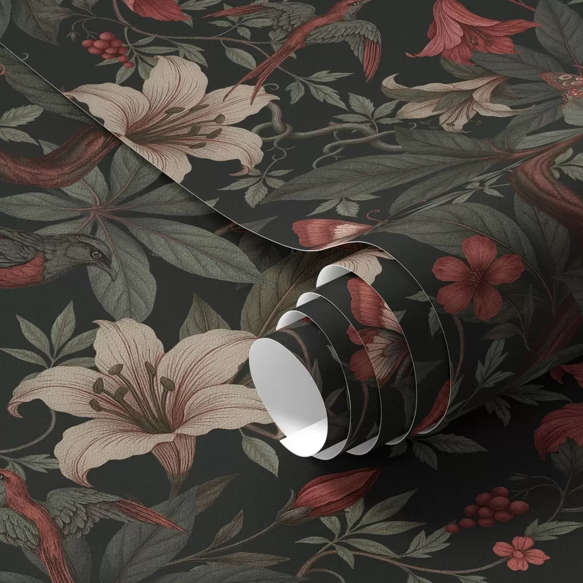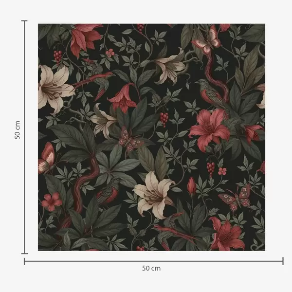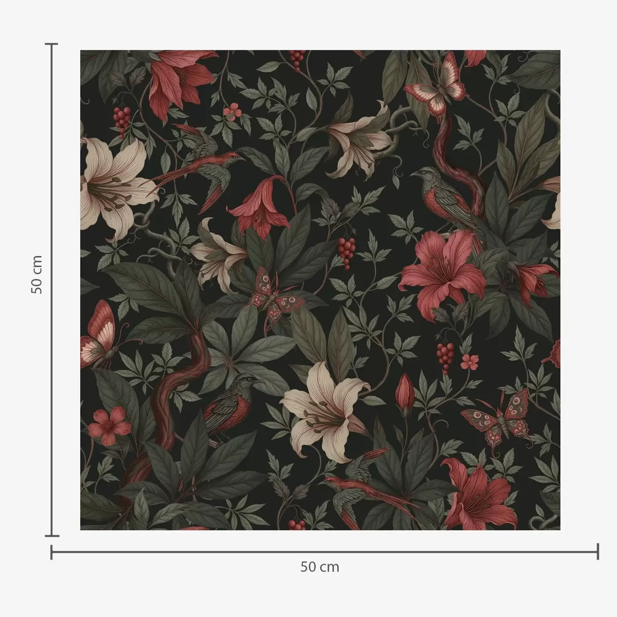 Tapeet Tumedad džungli lilled lindude ja liblikatega Nr. a00895