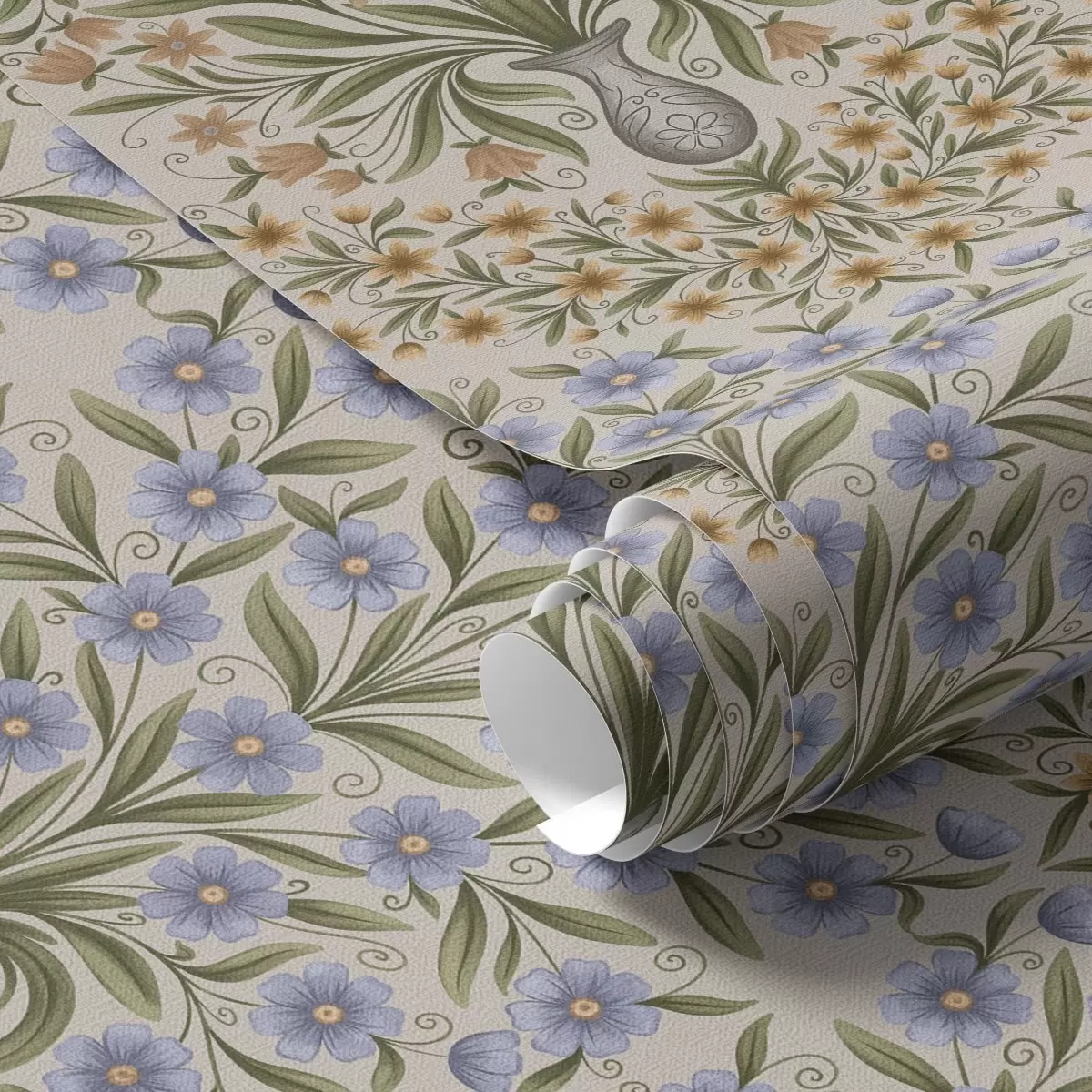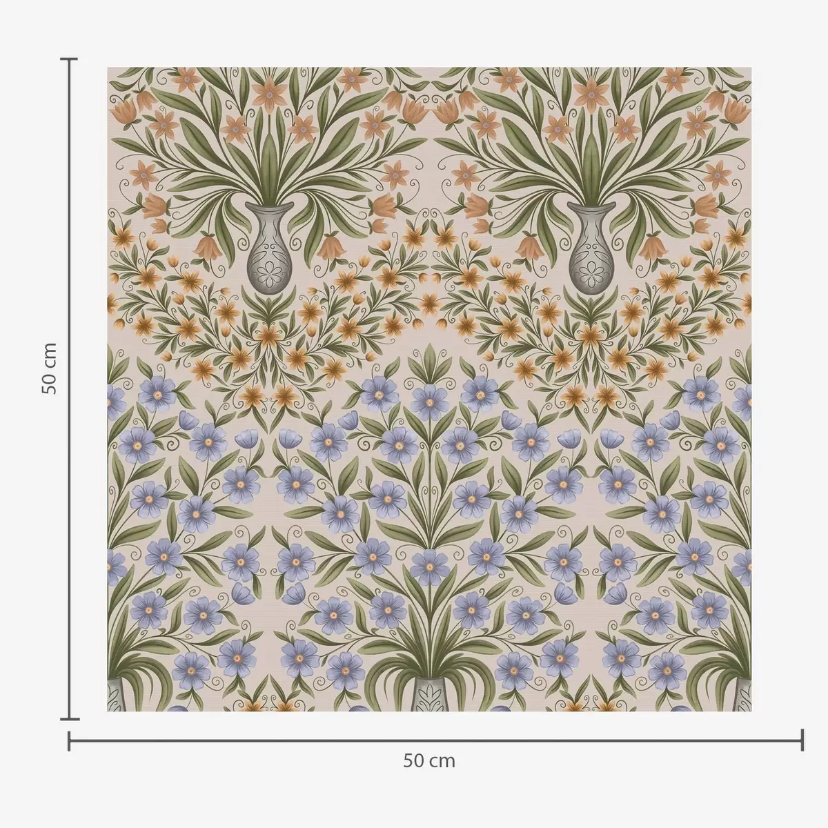 Tapeet Rahvapärased vaasid siniste õitega ja oliivilehtedega roosakaspruunil taustal Nr. a00900