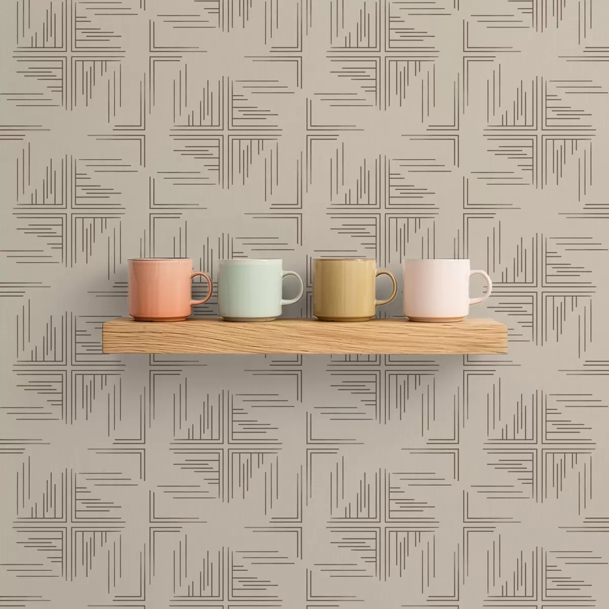 Tapeet Kakaonurkade plokid hajutatud joonaktsentidega, beež Nr. a00912