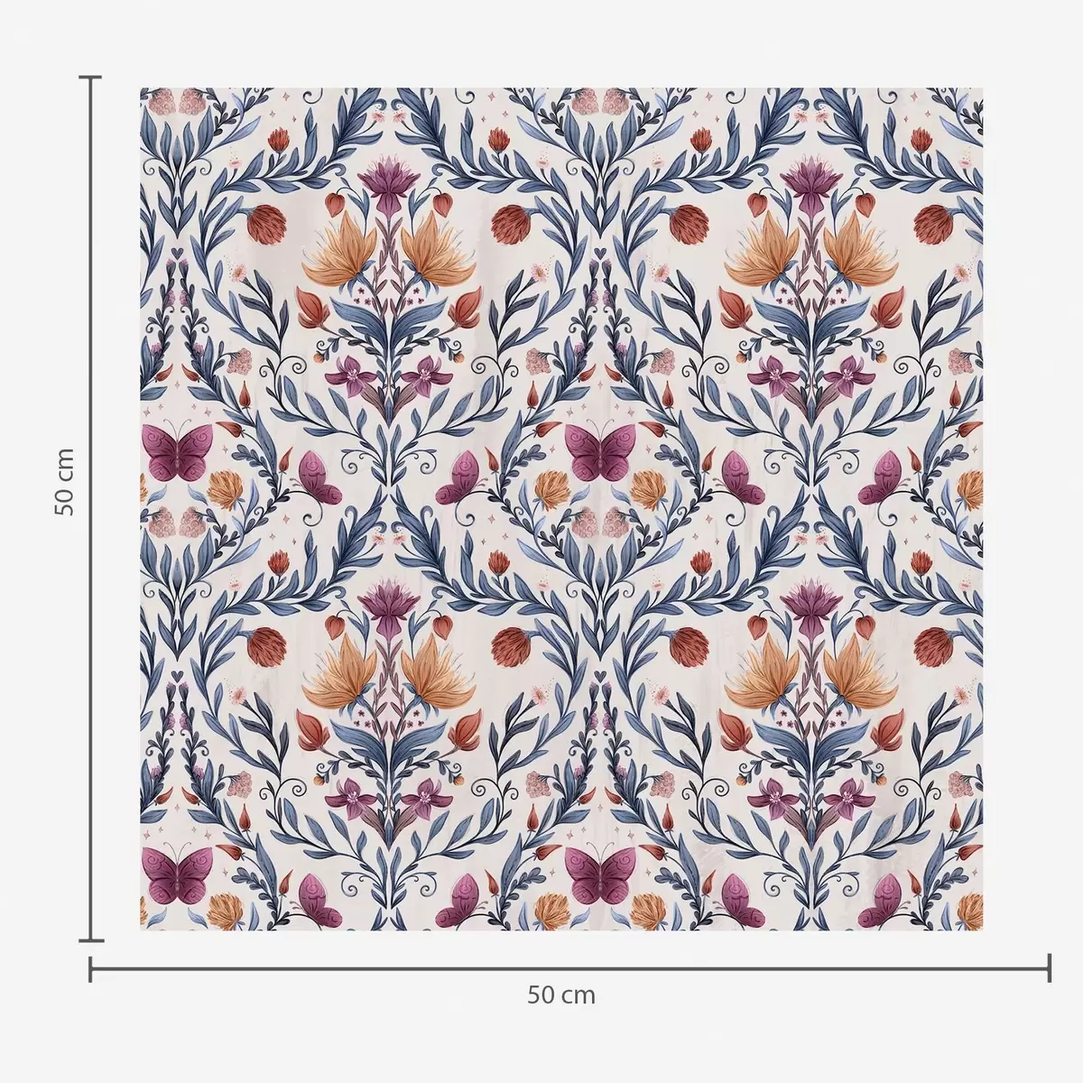 Tapeet Lilleline damask mustade ja terrakota värvi liblikatega valgel taustal Nr. a00926v1