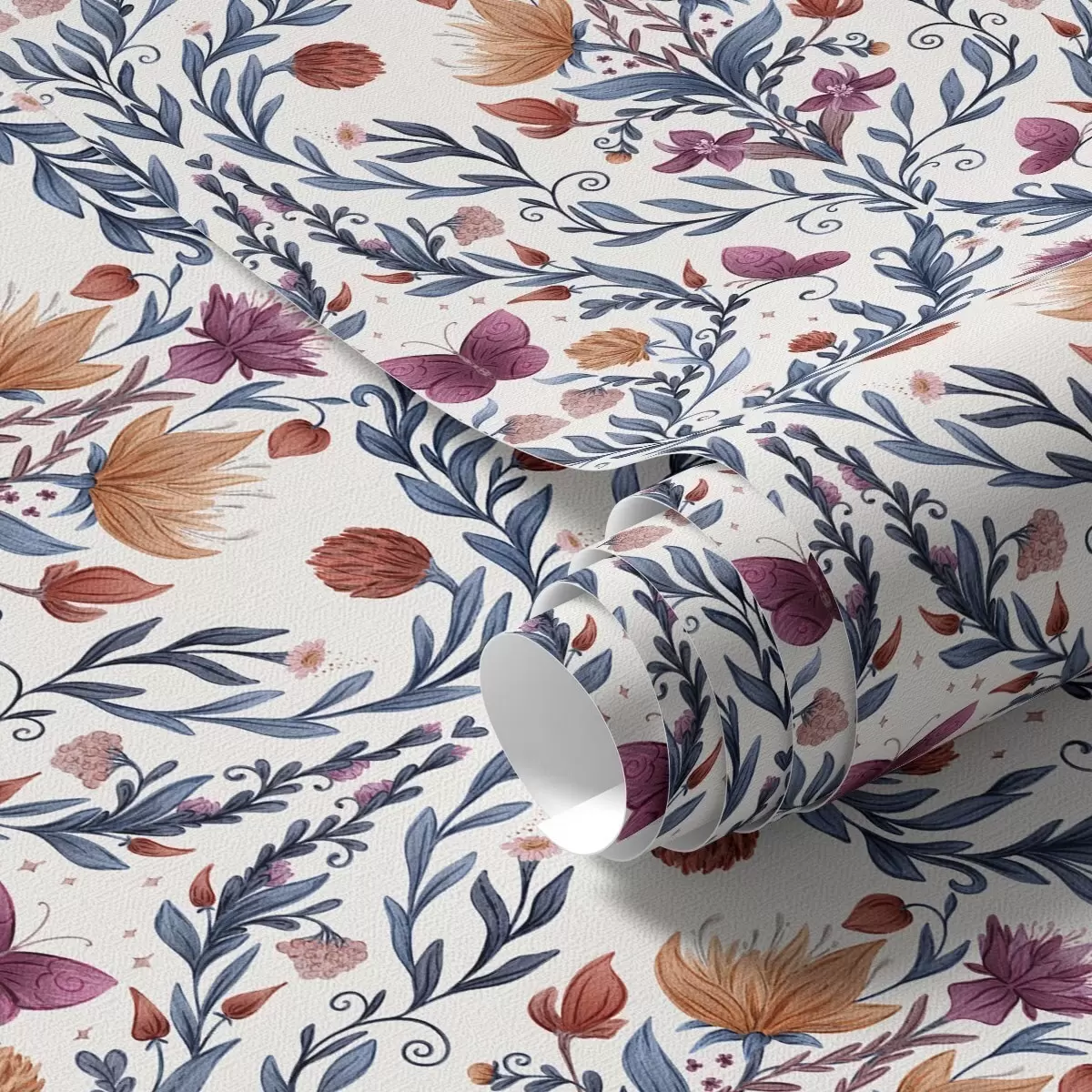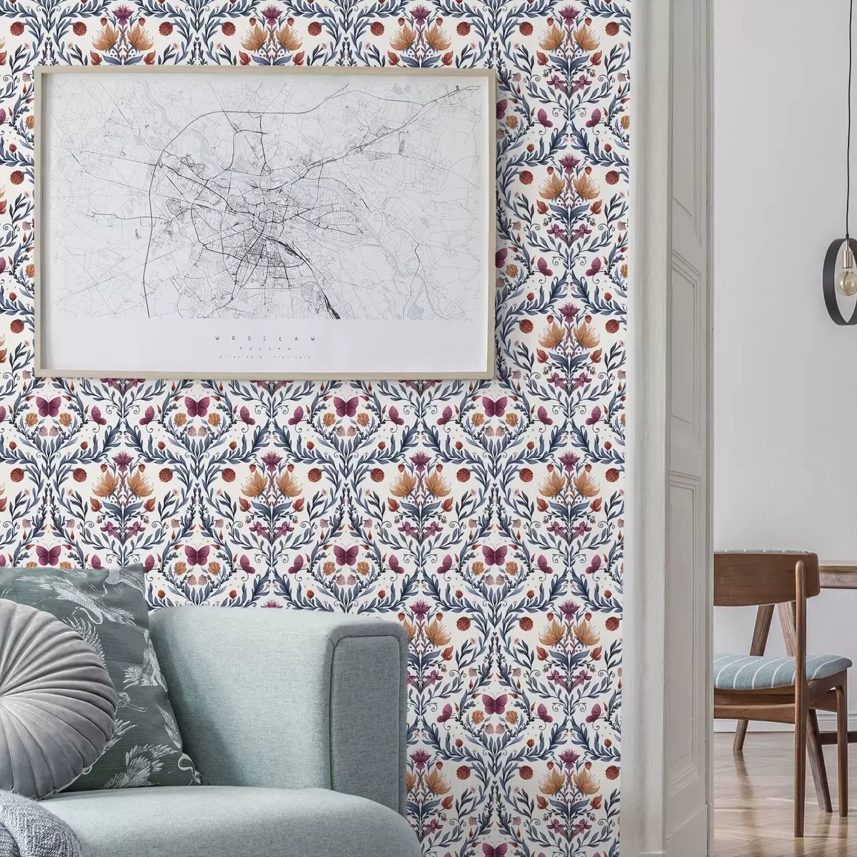 Tapeet Lilleline damask koos liblikatega soojal kreemikal Nr. a00926v2