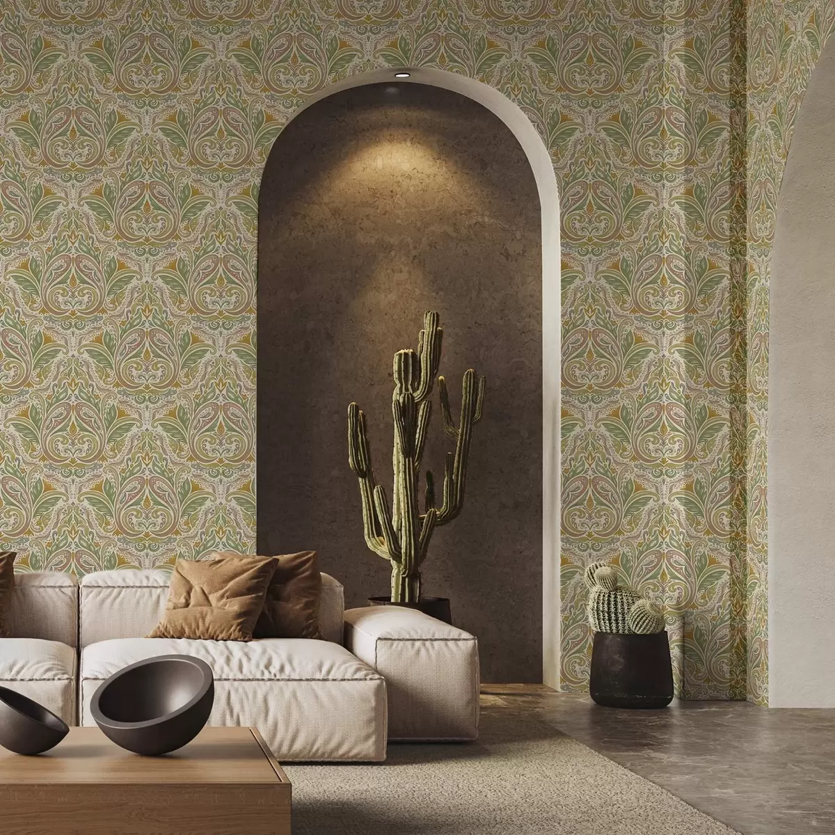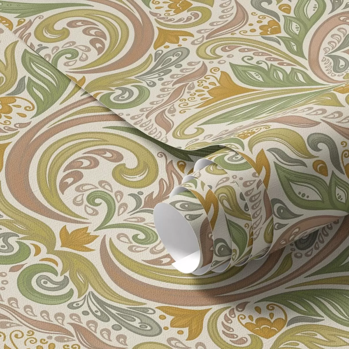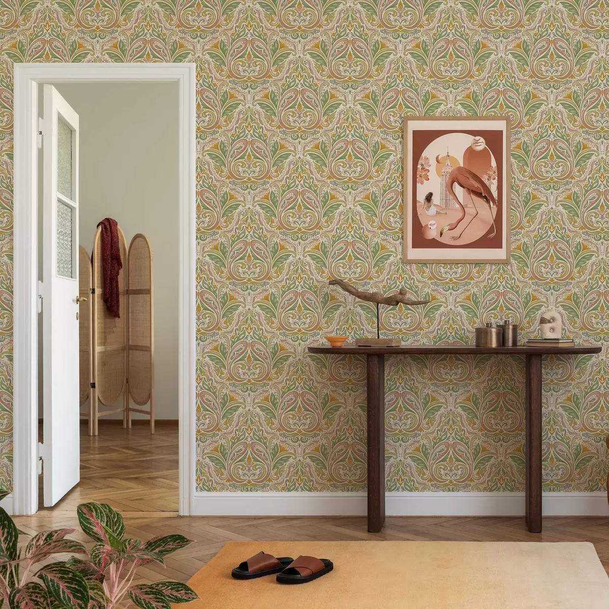 Tapeet Dekoratiivsed lehtedega keerud rohelistes ja terrakotta toonides Nr. a00927v1