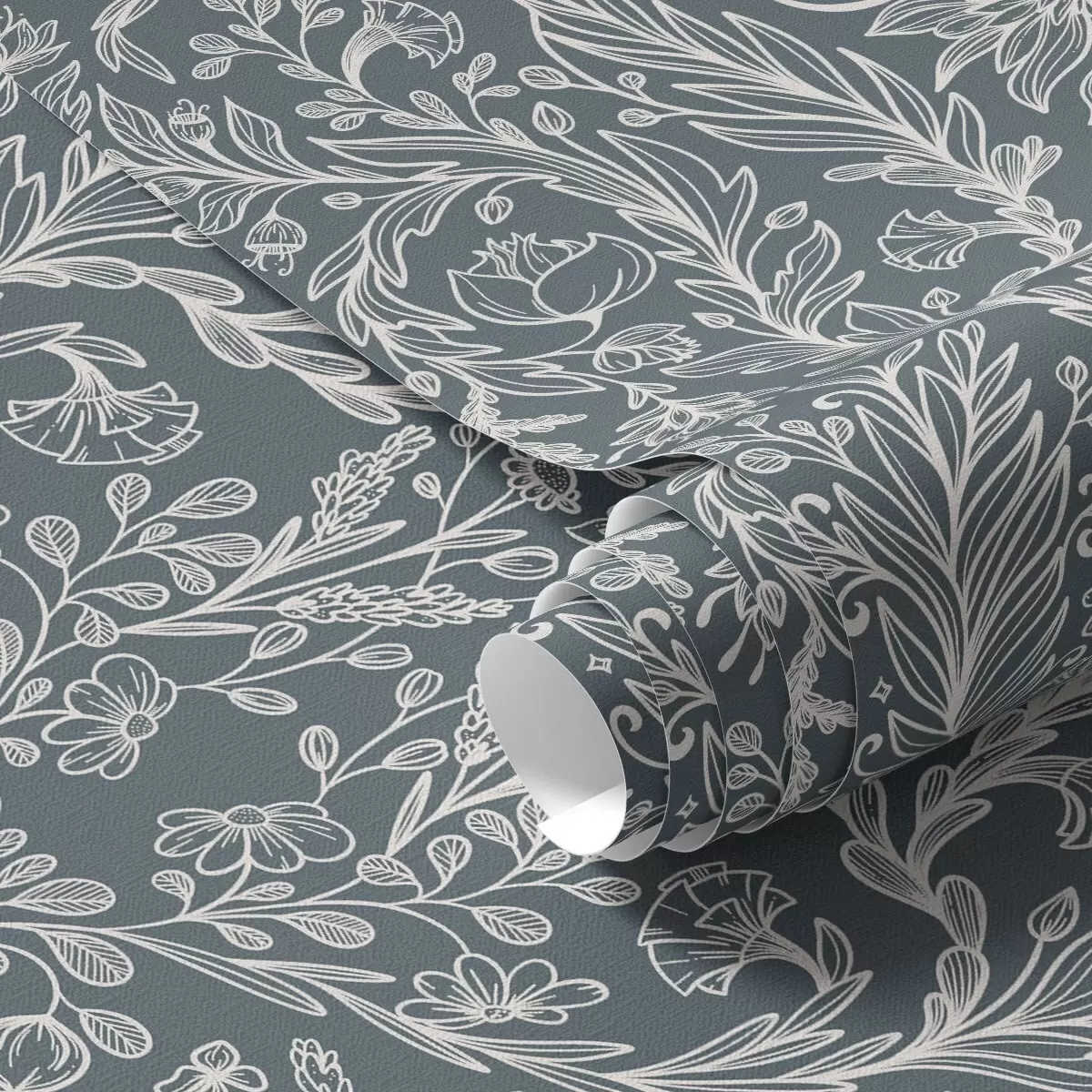Tapeet Lineaarne lilleornament sinakashallil taustal Nr. a00929v1