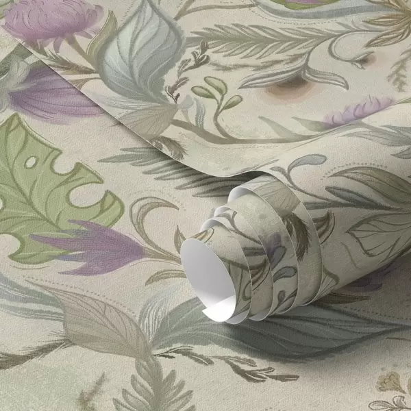 Tapeet Lilla pungad ja pehme rohelus kreemikal taustal Nr. a00930v2