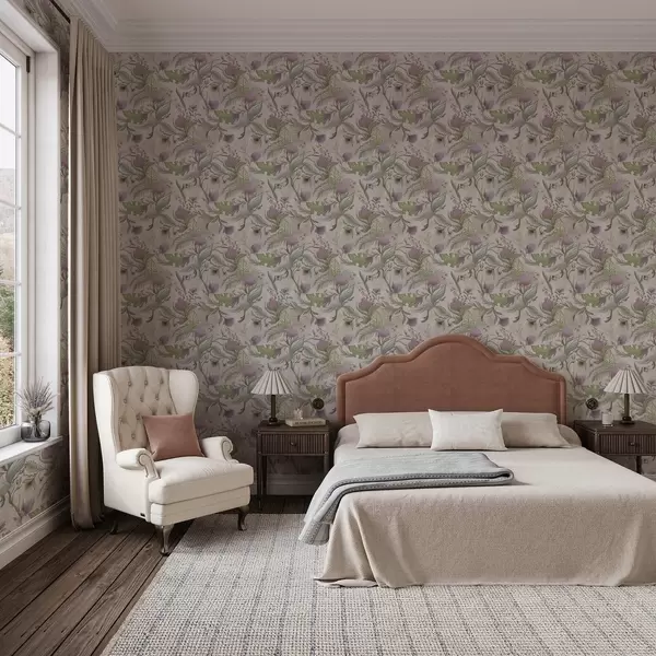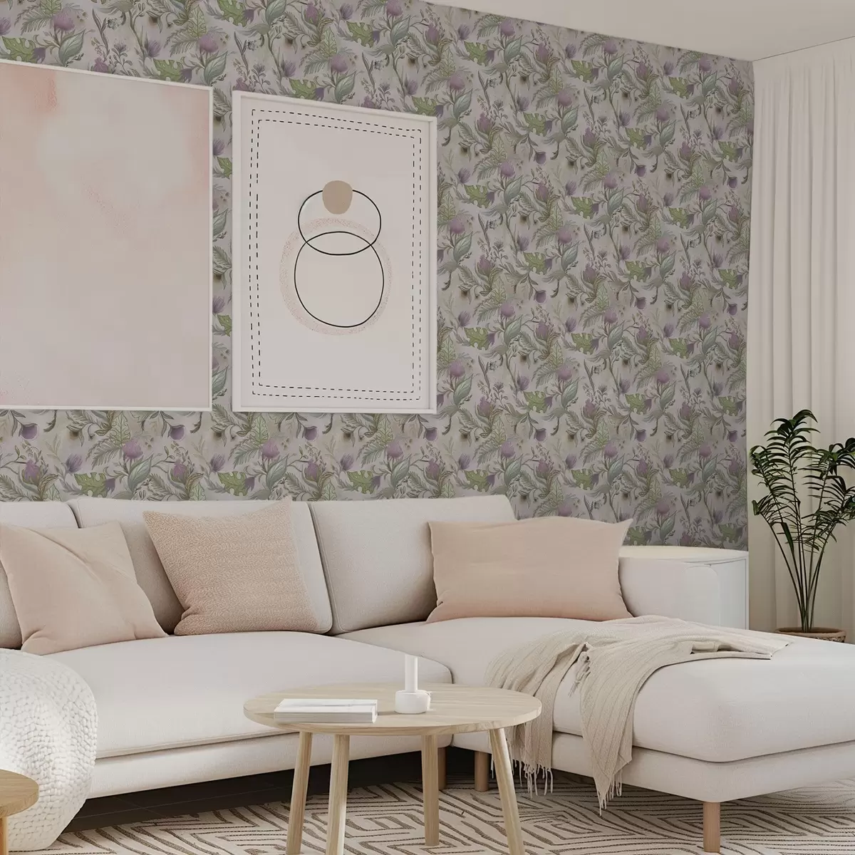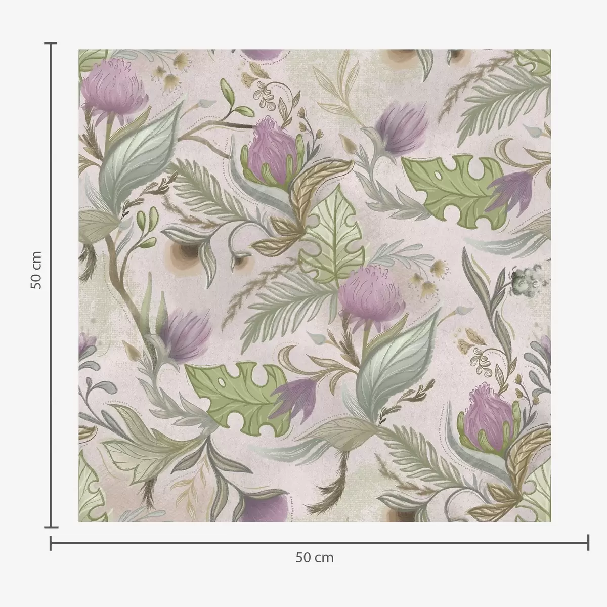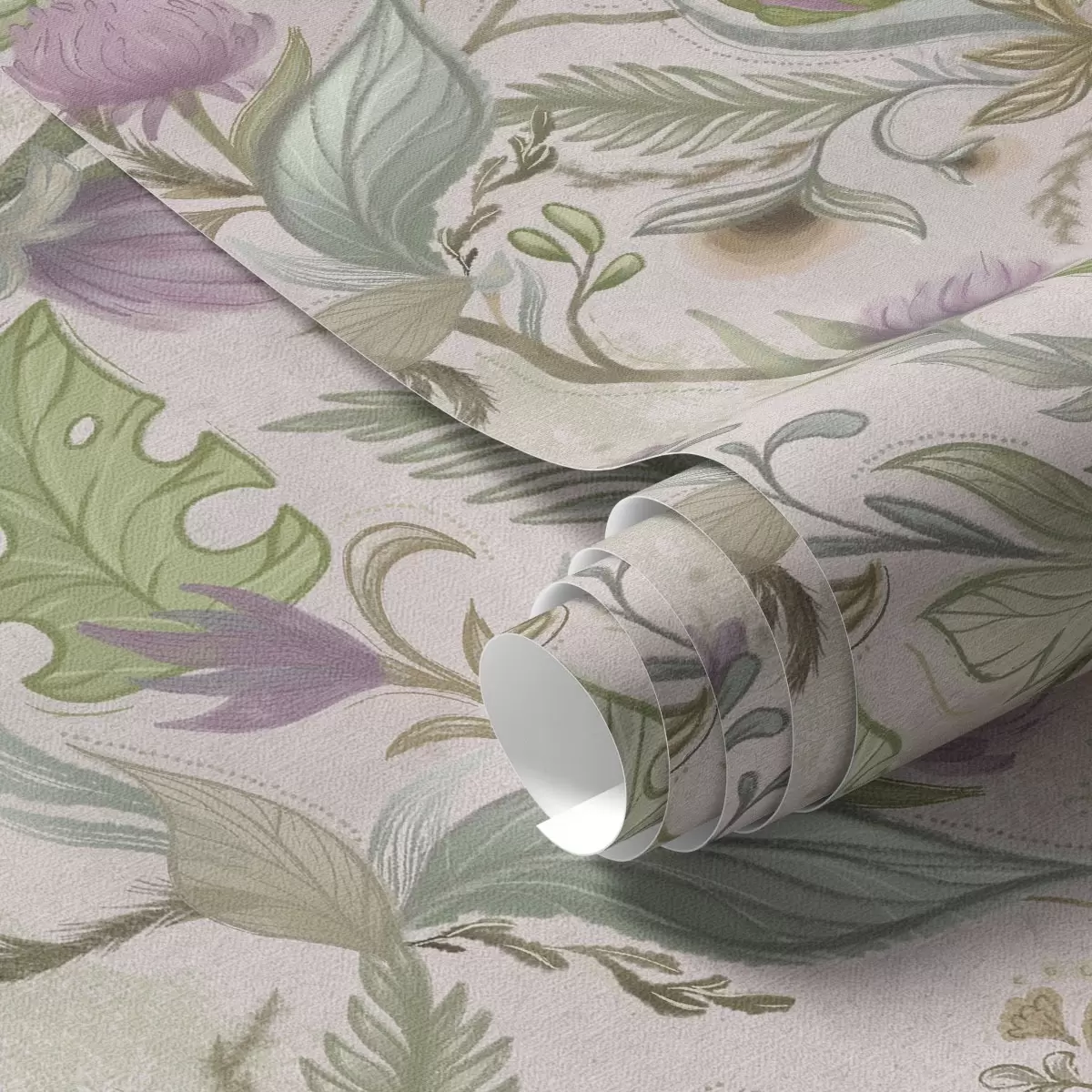 Tapeet Lilla looduslilled ja lehed puudritoosel taustal Nr. a00930v3