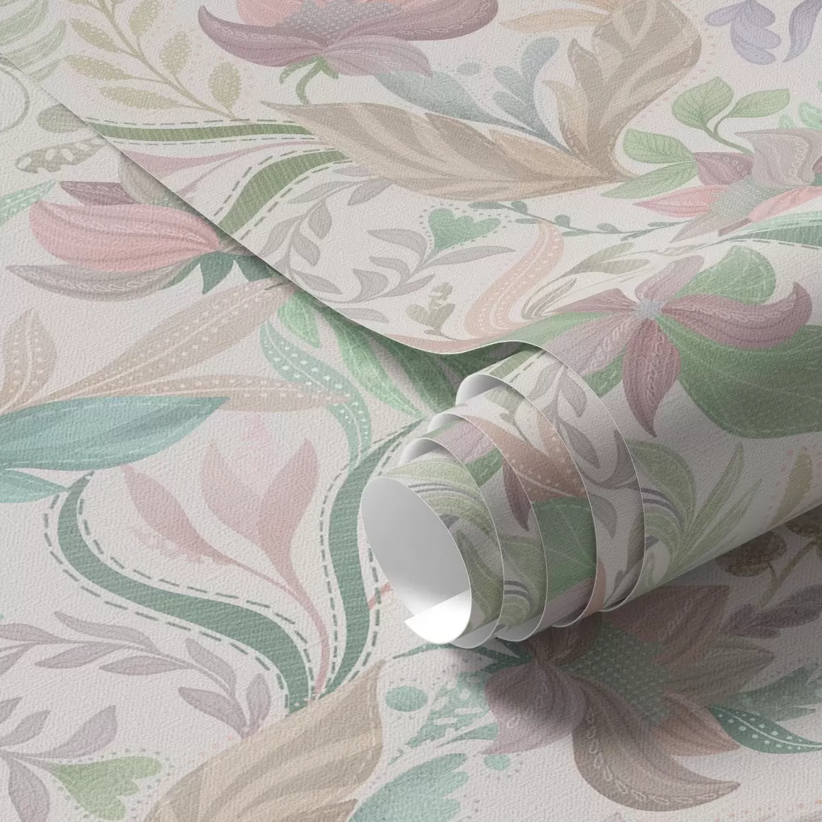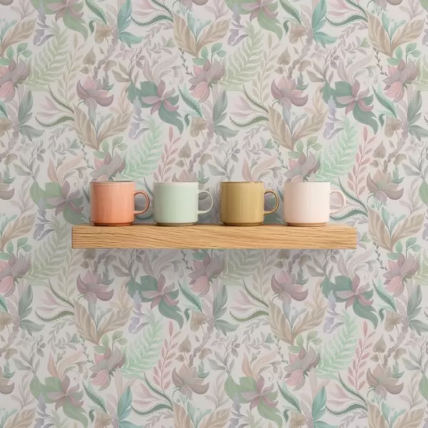 Tapeet Õrnad pastelltoonides lilled ja lehed heledal taustal Nr. a00931