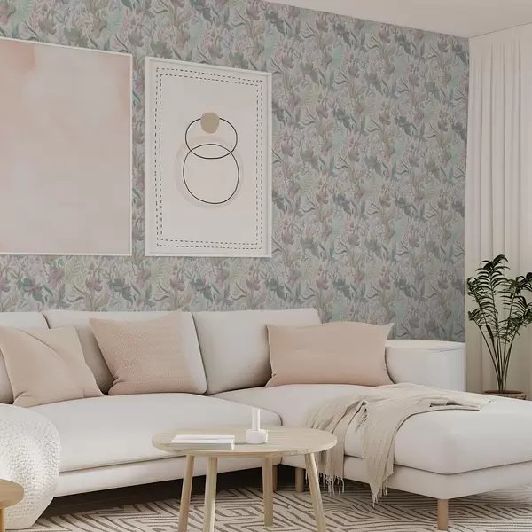 Tapeet Õrnad pastelltoonides lilled ja lehed heledal taustal Nr. a00931