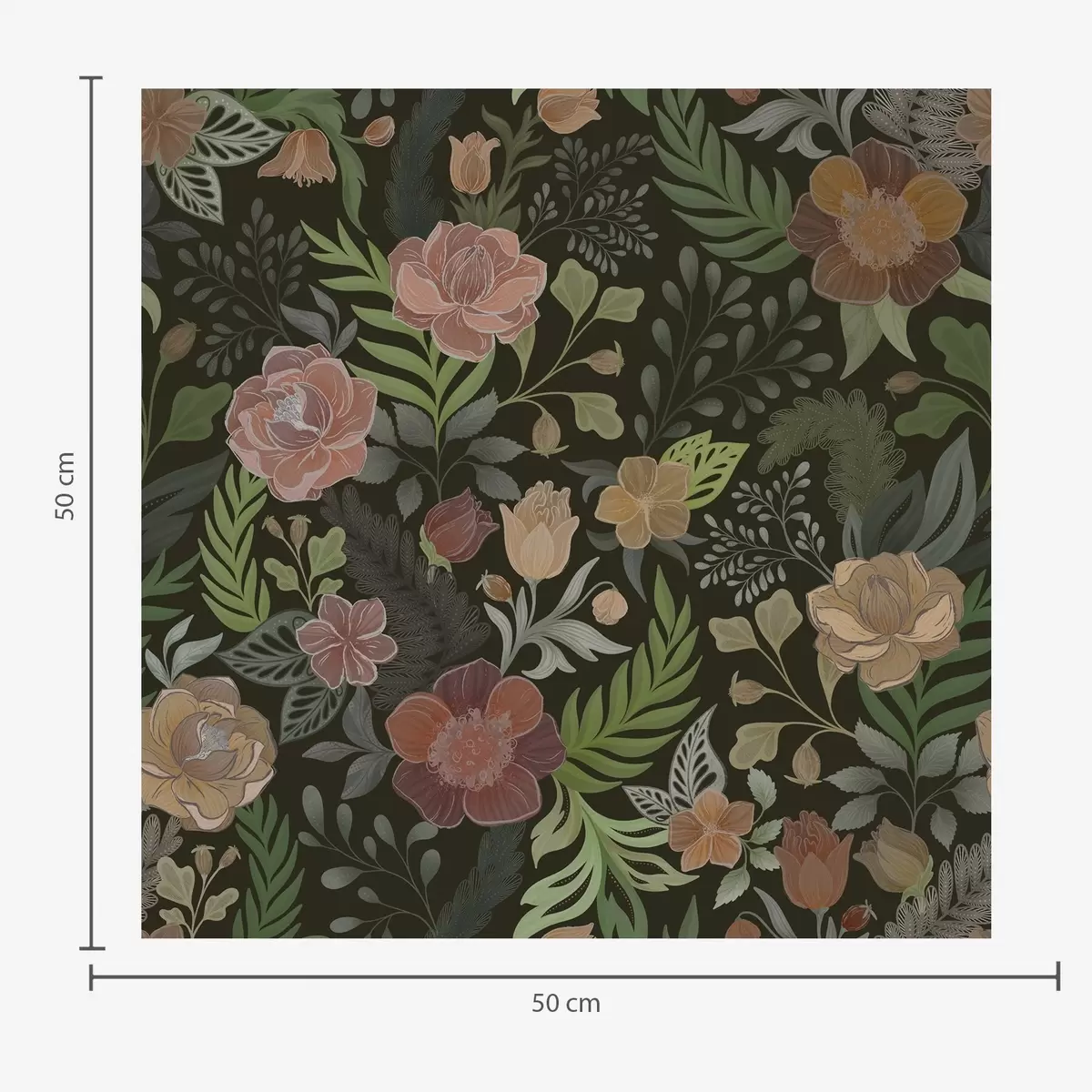 Tapeet Rikkalikud lilled ja rohelus sügaval tumedal taustal Nr. a00932
