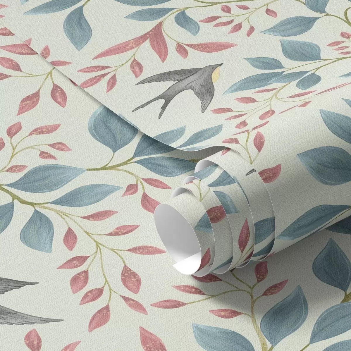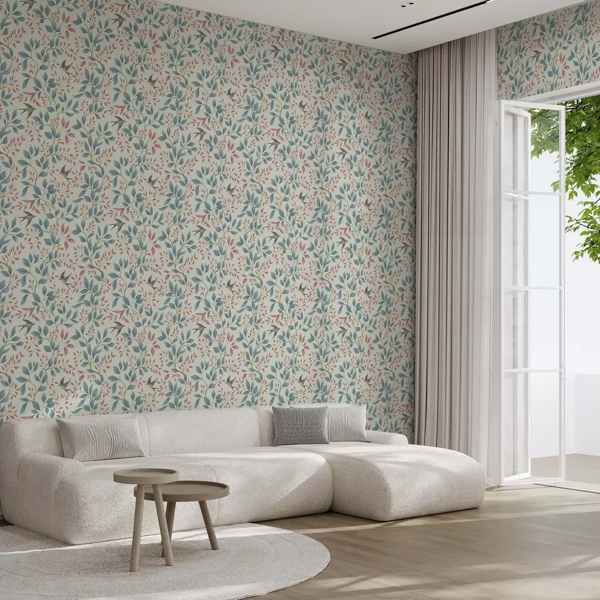 Tapeet Õhulised oksad ja linnud heledal minti taustal Nr. a00933v1