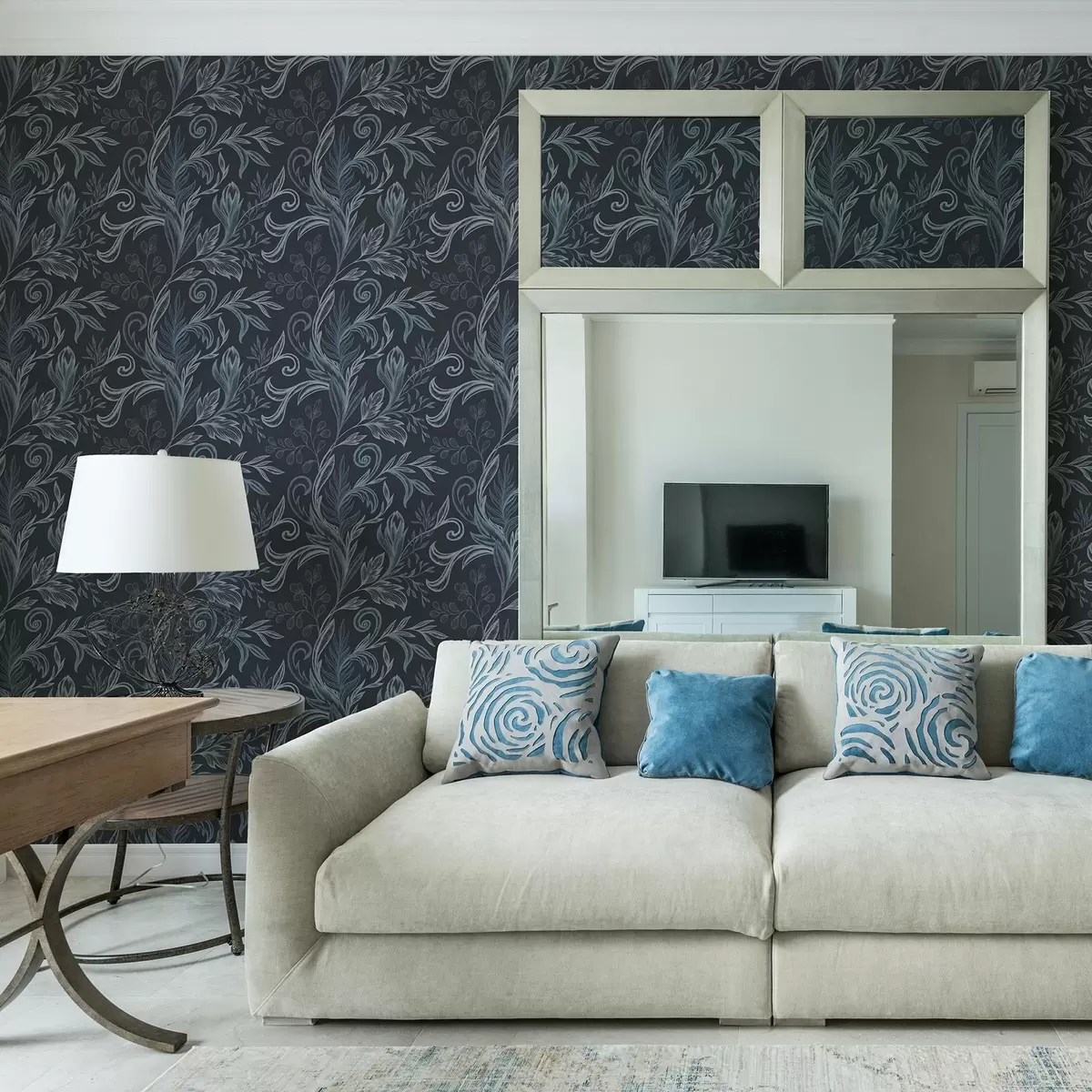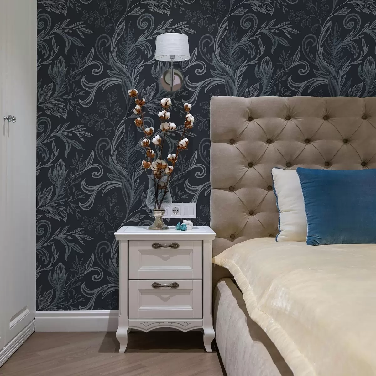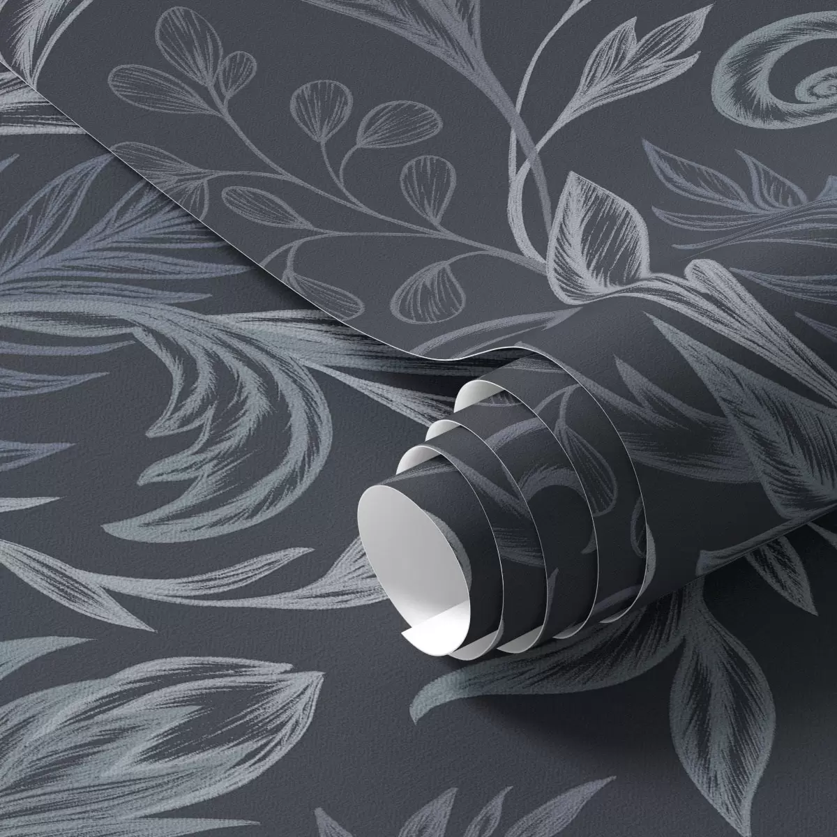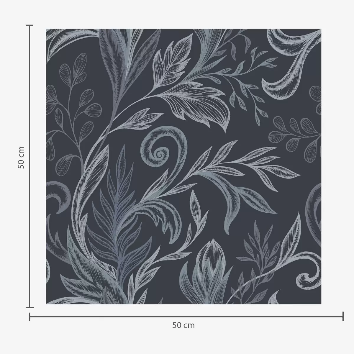 Tapeet Tumedad indigo värvi lokkis lehed käsitsi joonistatud varjunditega Nr. a00935