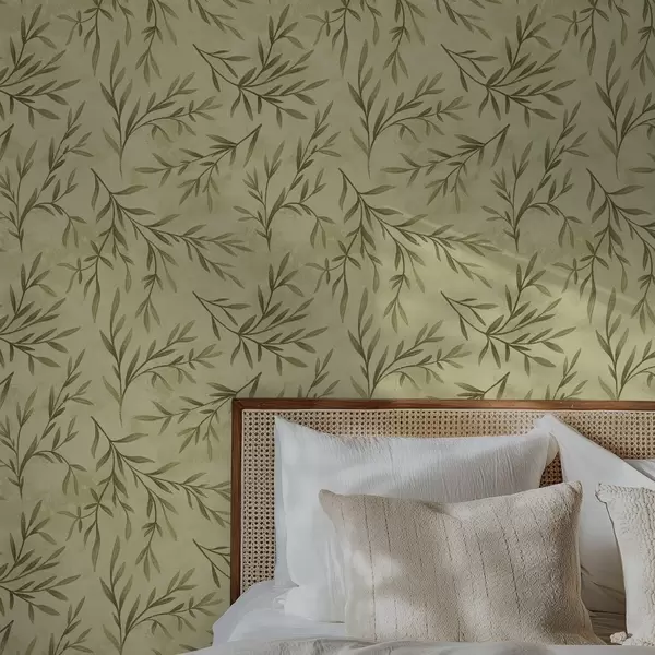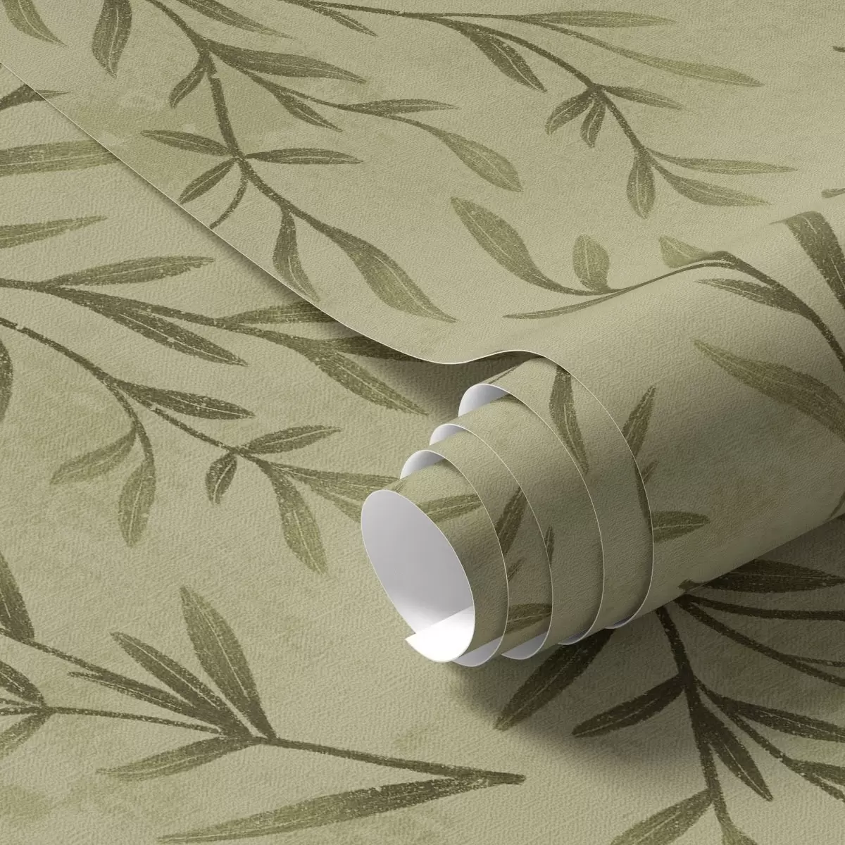 Tapeet Oliivipuu oksad vaoshoitud kollakasrohelisel tekstuuriga taustal Nr. a00936