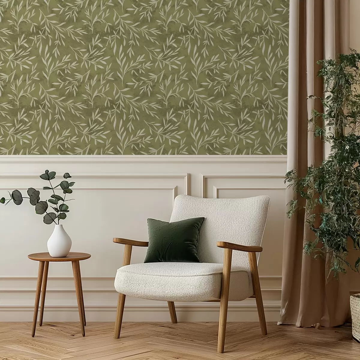 Tapeet Kreemvalged oksakesed soojal oliivikarva tekstuuriga taustal Nr. a00936v1