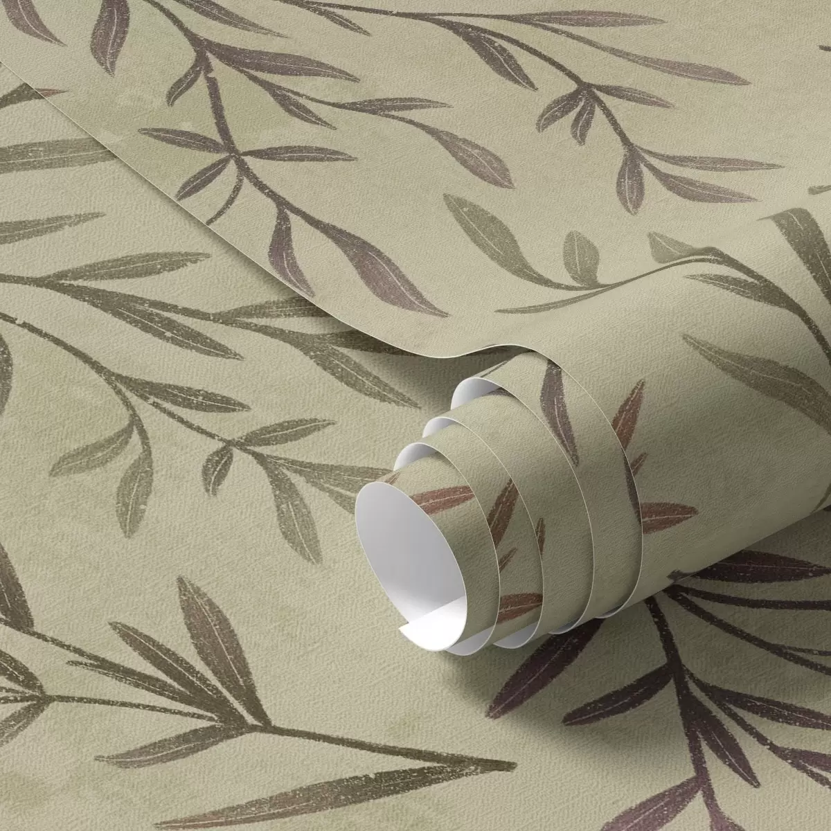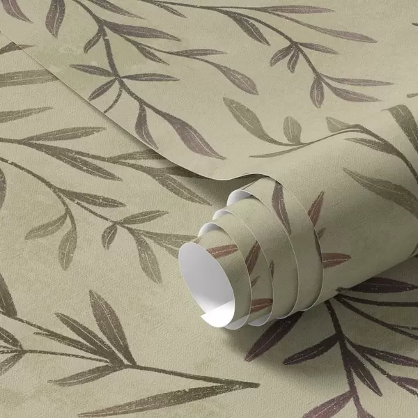 Tapeet Lilla ja rohelised oksad lehtedega soojal taustal Nr. a00936v4