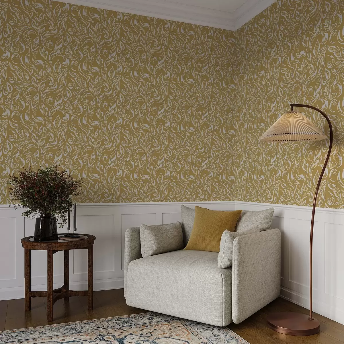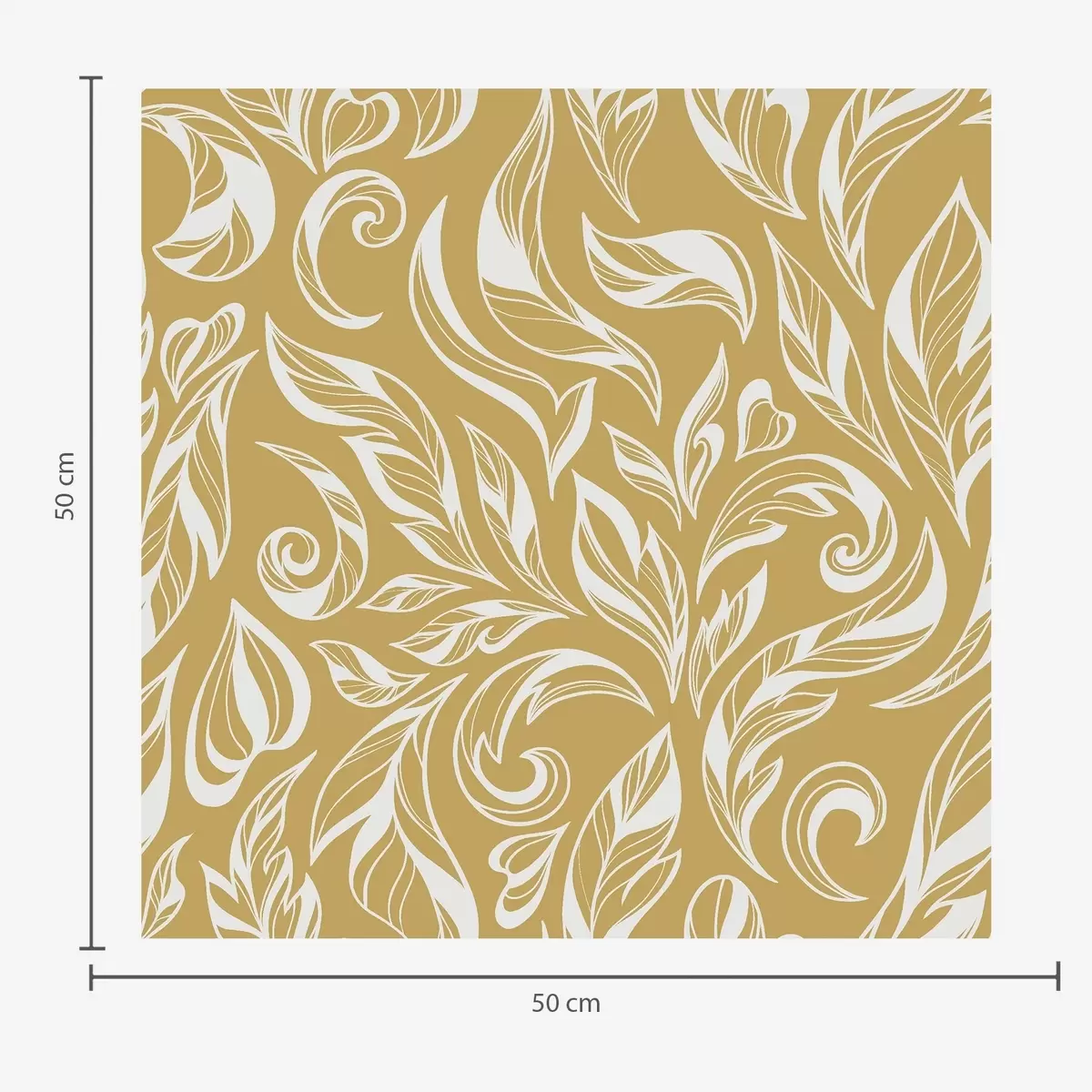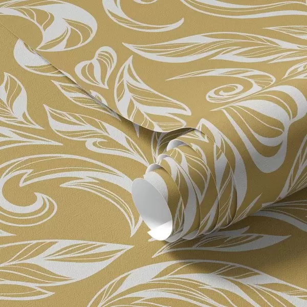 Tapeet Kreemvalge leheornament soojal okra taustal Nr. a00940v1