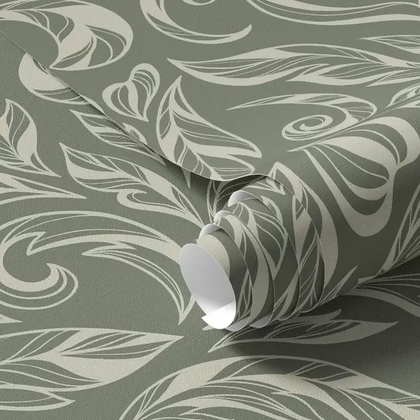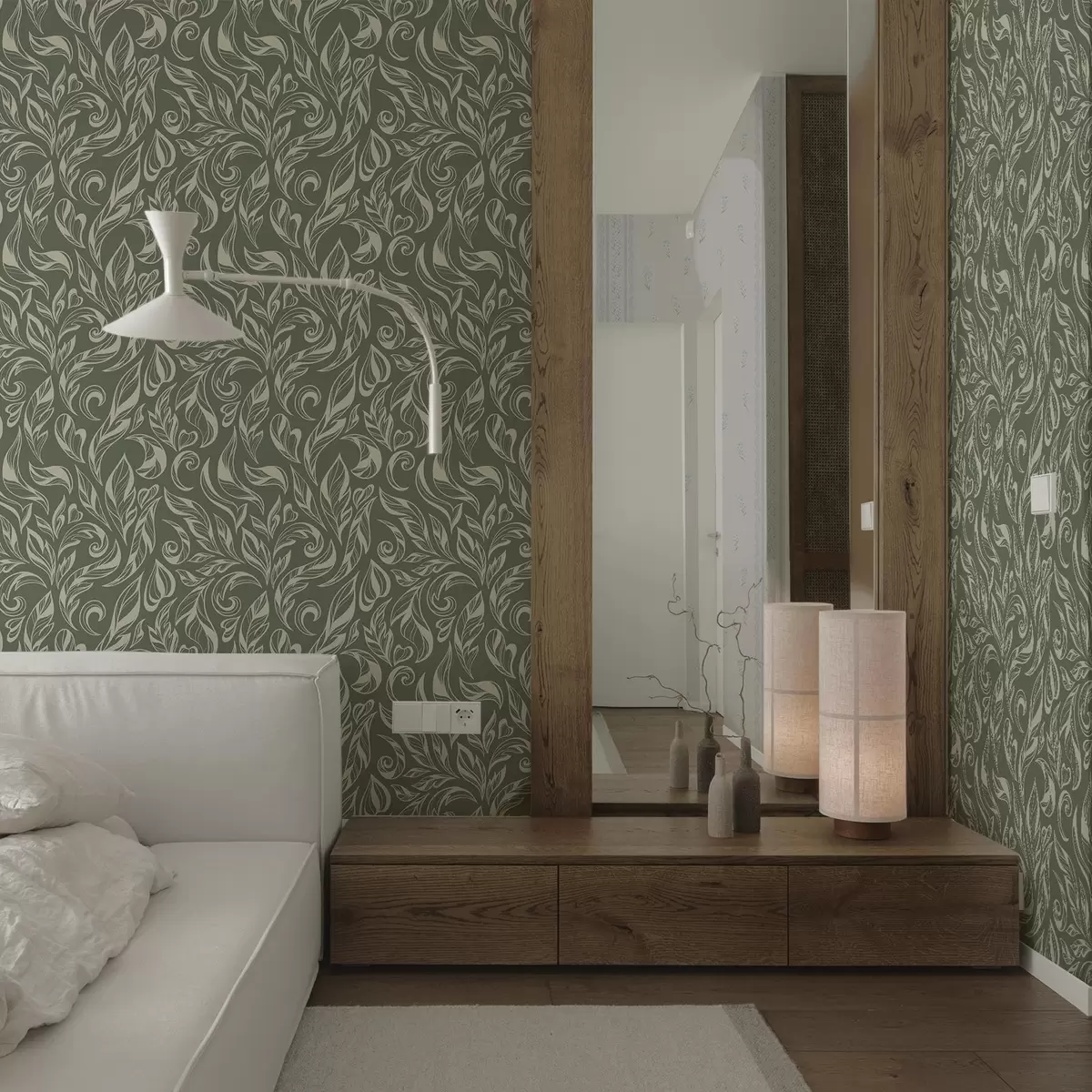 Tapeet Kreemikas leheornament rohekashallil taustal Nr. a00940v2