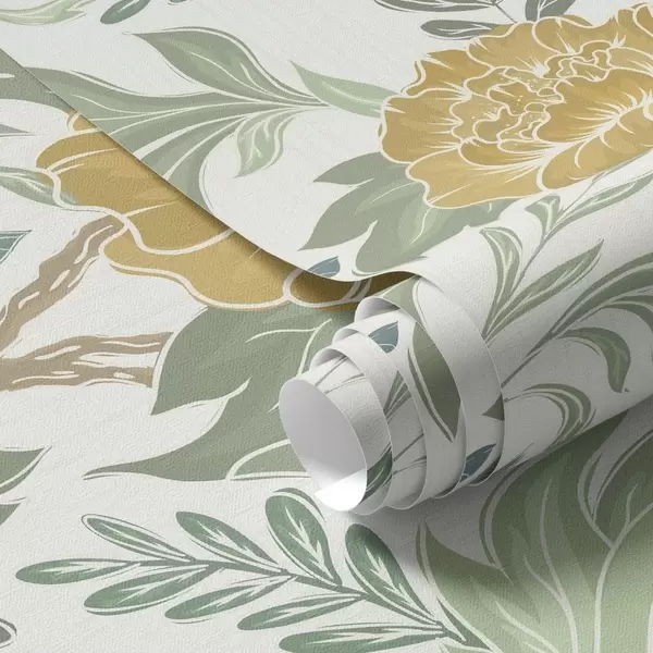 Tapeet Suured kollased pioonid ja rohelus heledal taustal Nr. a00941