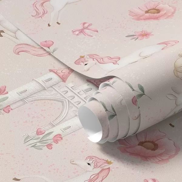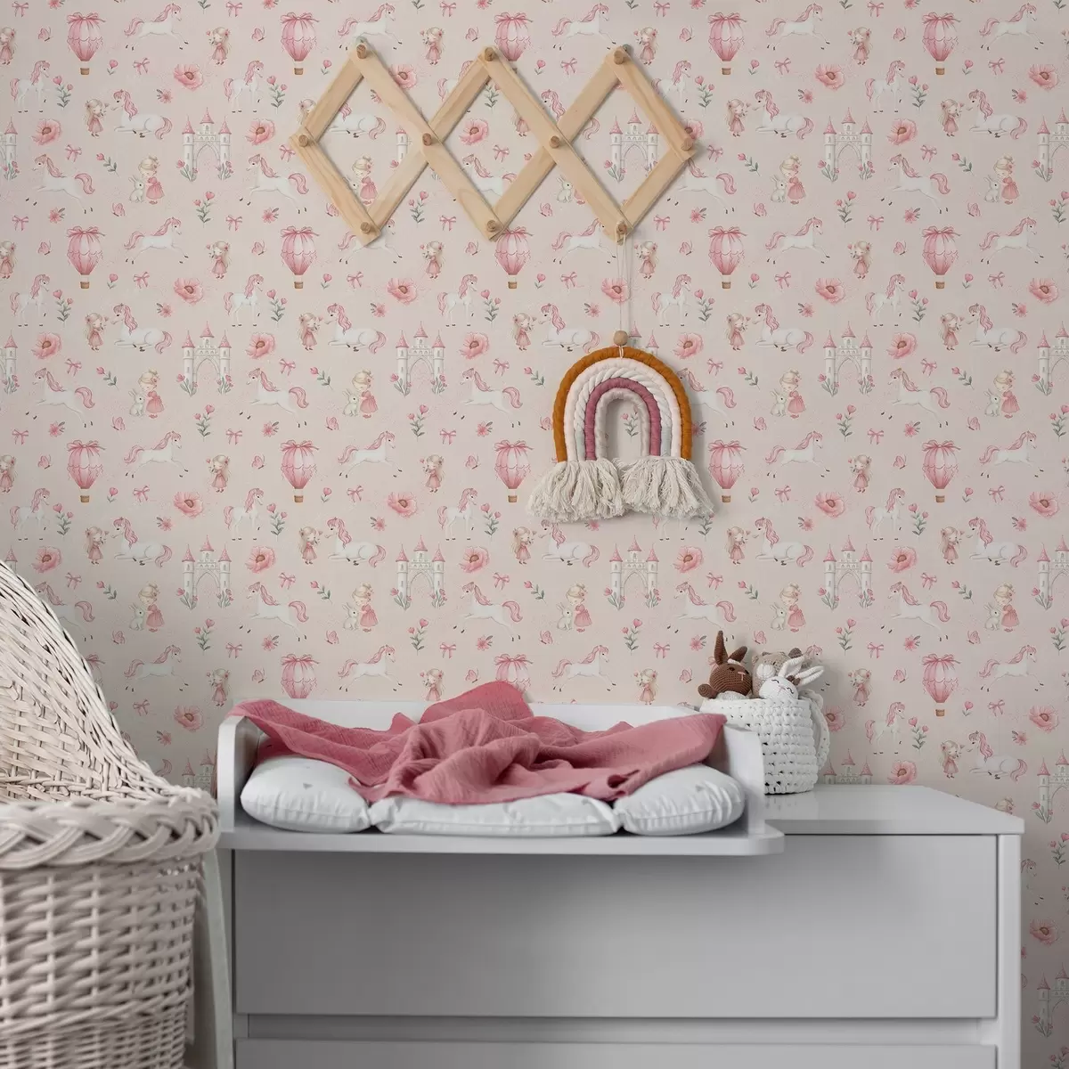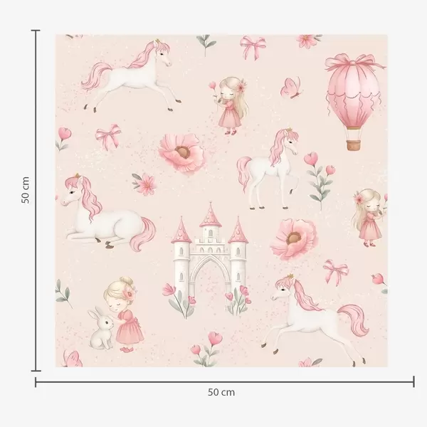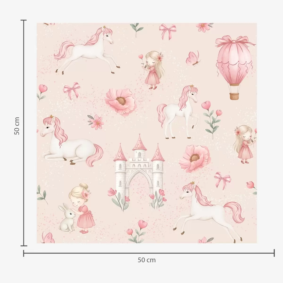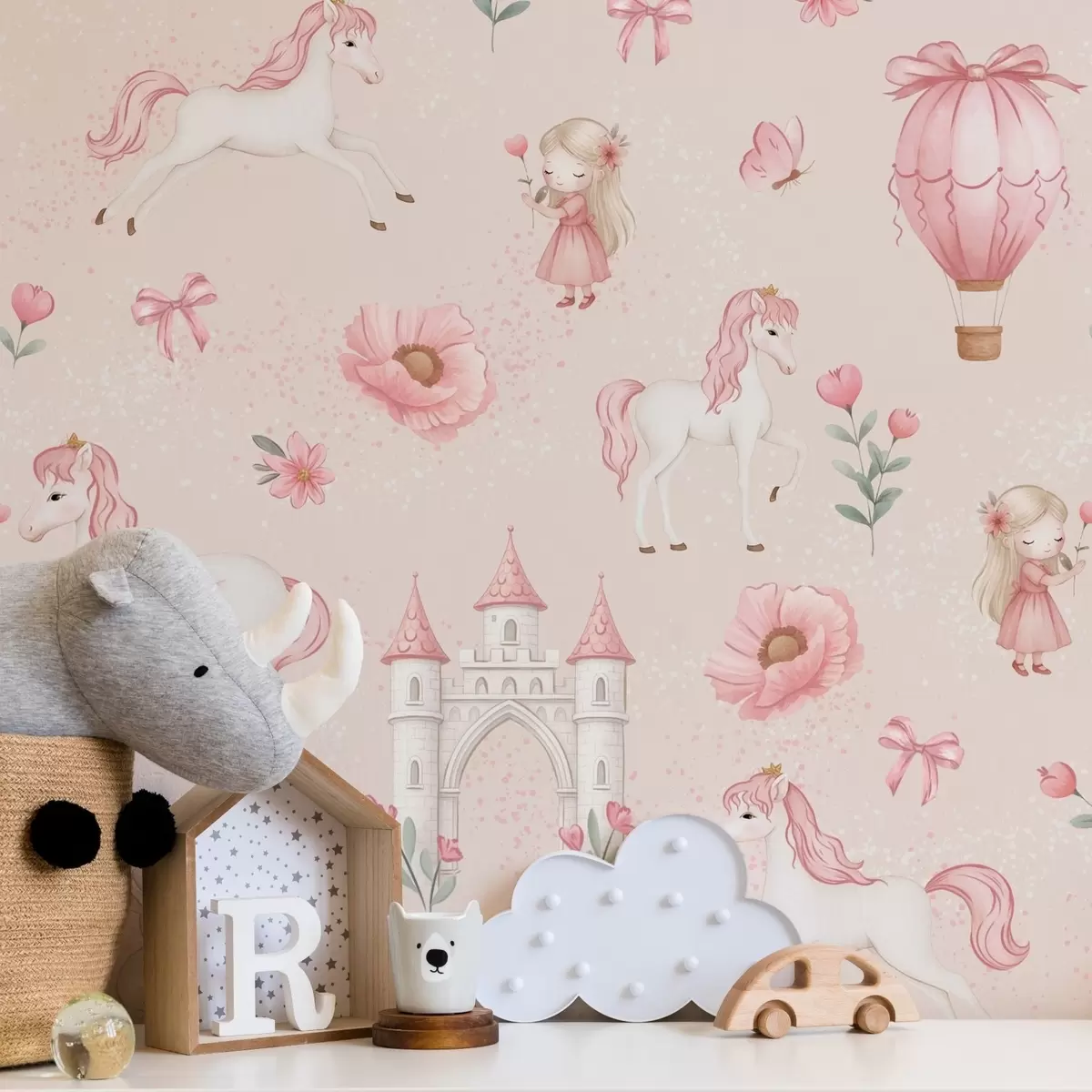 Tapeet Roosad ükssarvikud, väikesed tüdrukud ja loss pehme taustal Nr. a00957