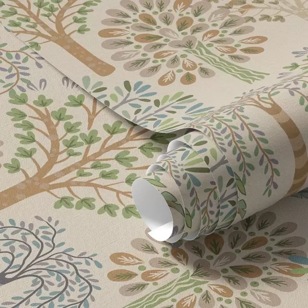 Tapeet Dekoratiivsed puud pehmes looduslikus värvipalettis a00960