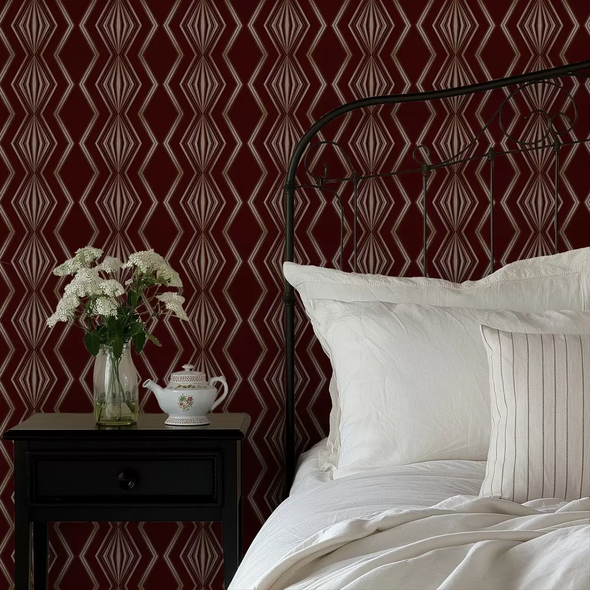 Tapeet Burgundia taust rütmiliste rombidega ja siksakiliste joontega Nr. a00974