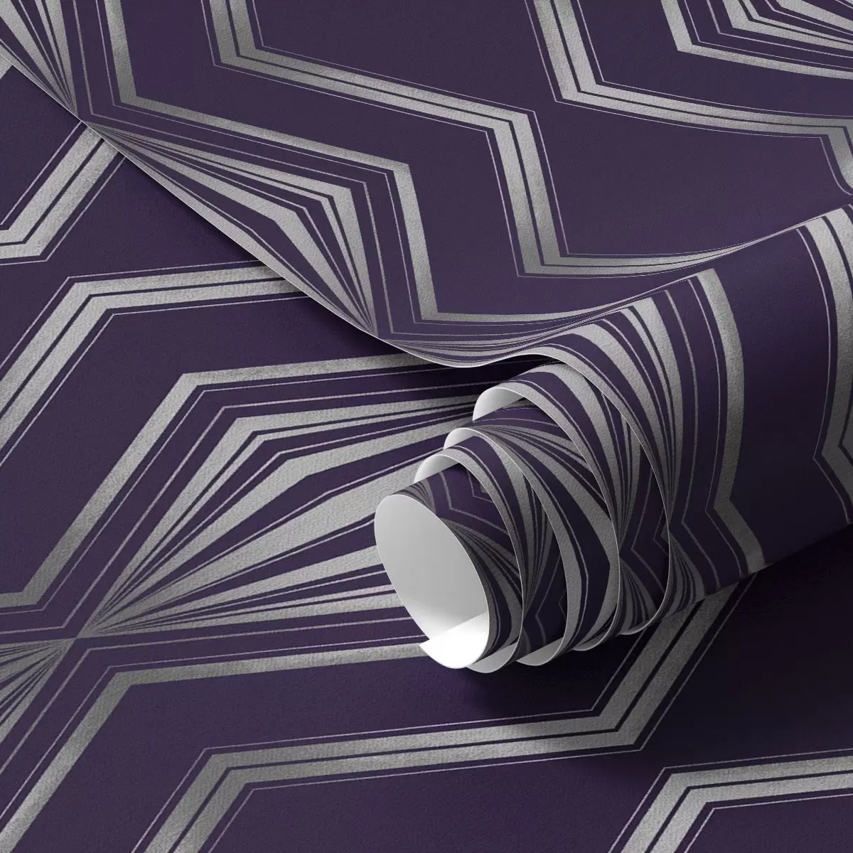 Tapeet Rikkalik violetne taust teemantide ja hallide siksakiliste joontega Nr. a00974v1