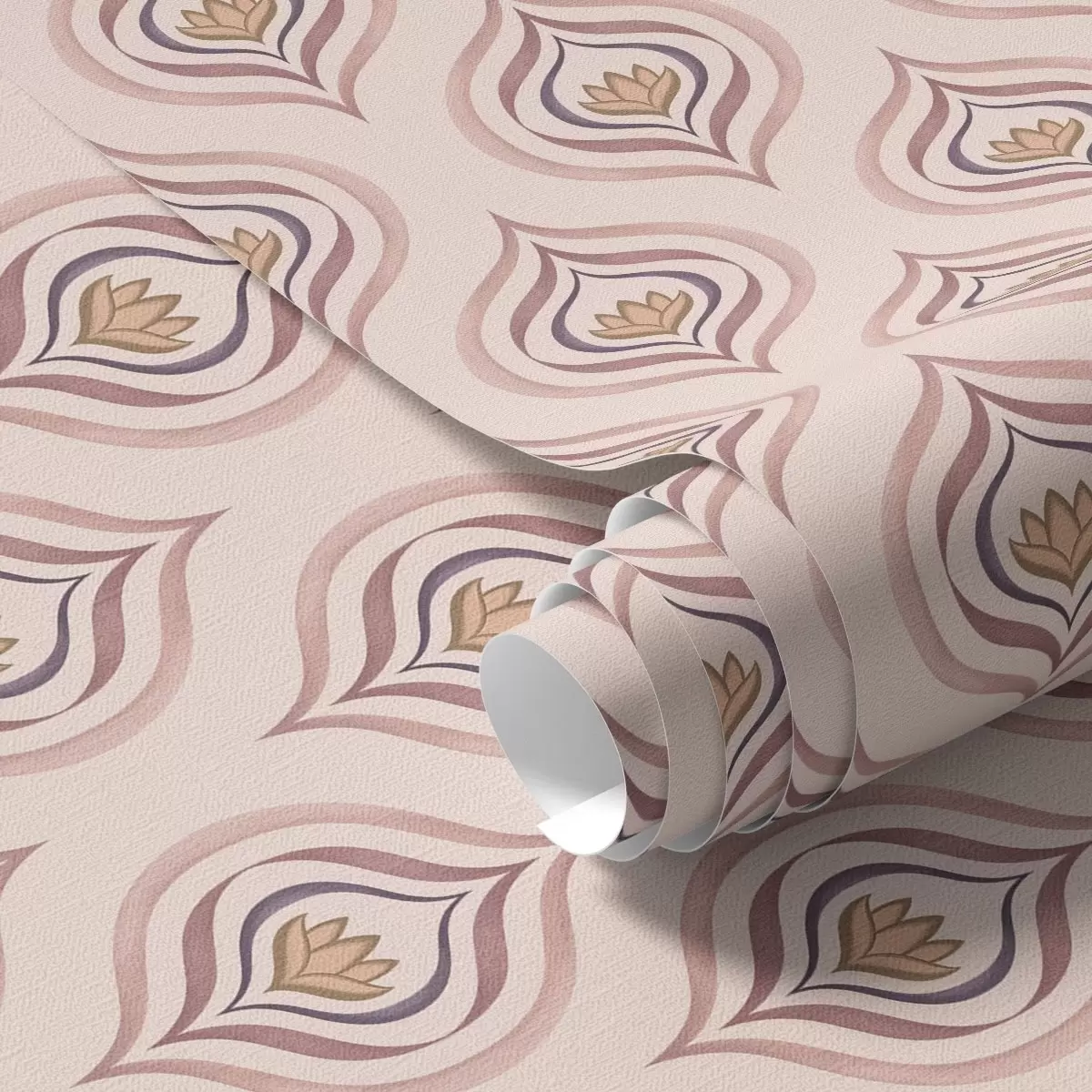 Tapeet Rütmiline tilkumotiiv lillega puudritoosel taustal a00977