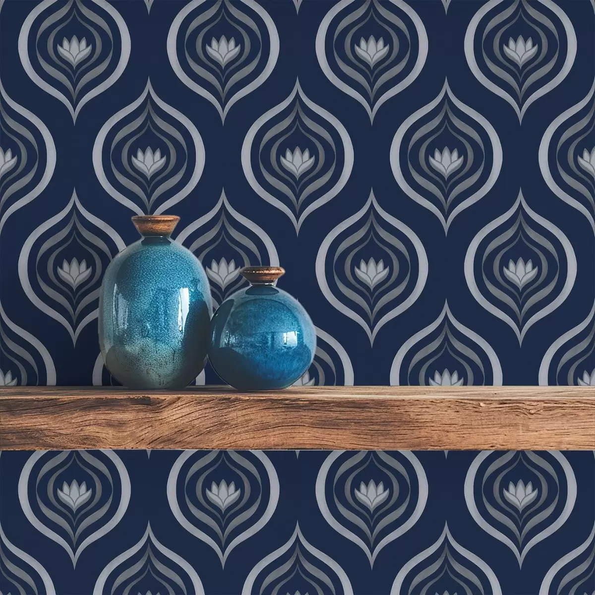 Tapeet Kontrastsed tilkamotiivid ja lill tumesinisel taustal Nr. a00977v1