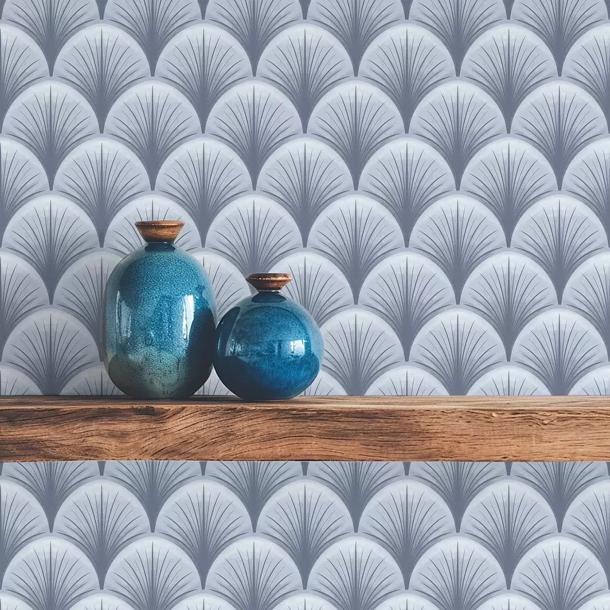 Tapeet Sinised lehvikukaared kiirtega helesinisel taustal Nr. a00978v1
