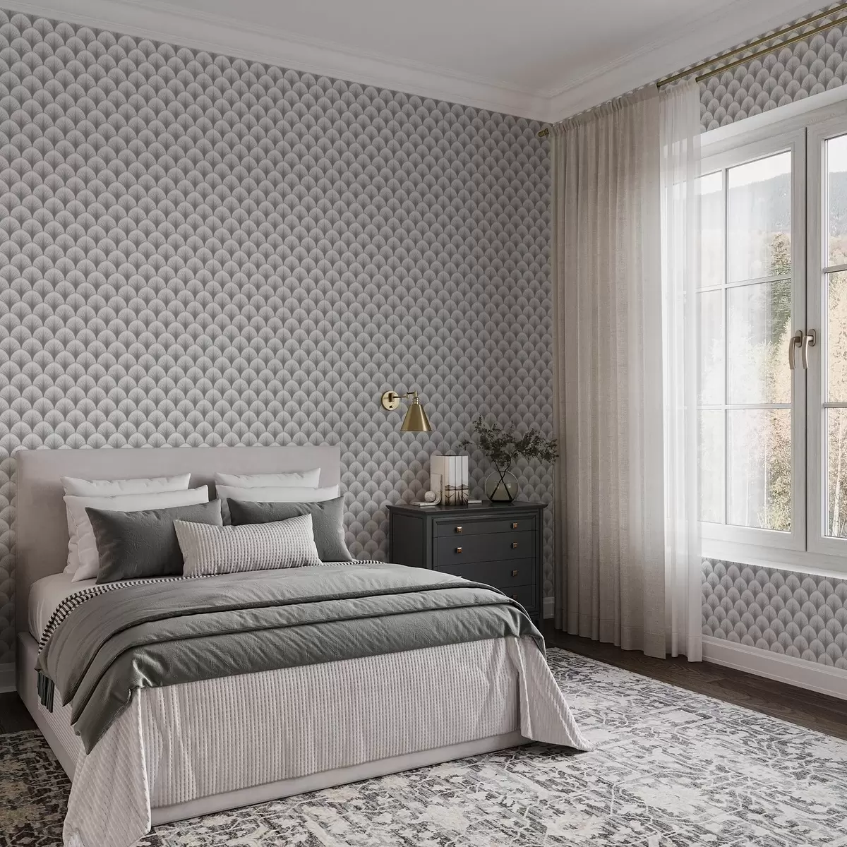 Tapeet Kontrastsed hallid lehvikukaared valgel taustal Nr. a00978v4