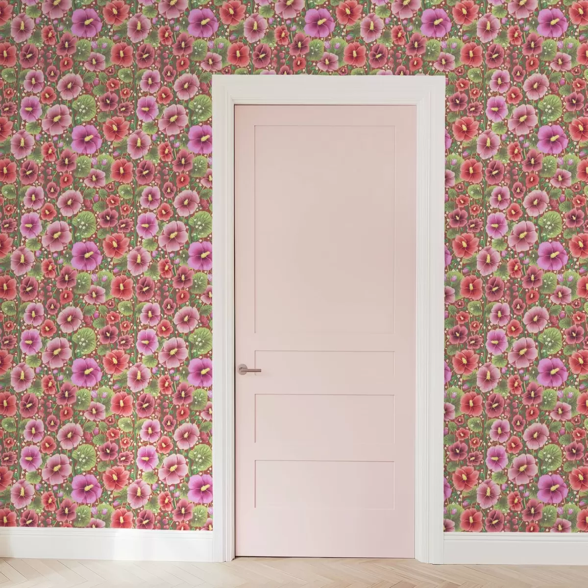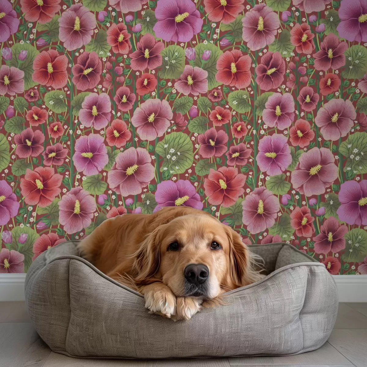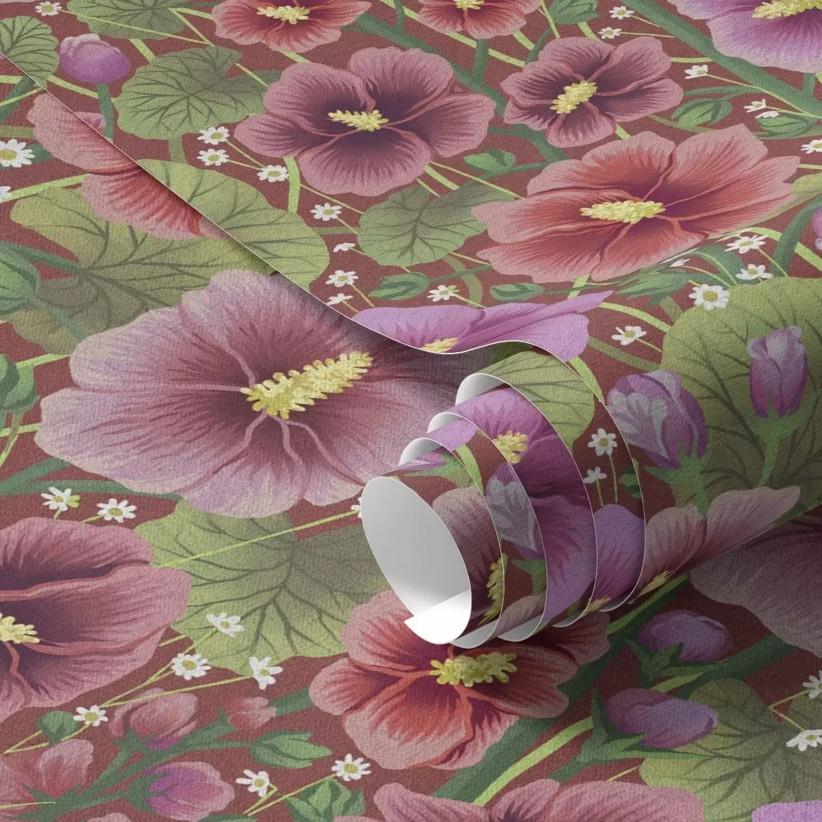 Tapeet Õitsev hibiskus soojal pruunikaspunase taustal Nr. a00993v1