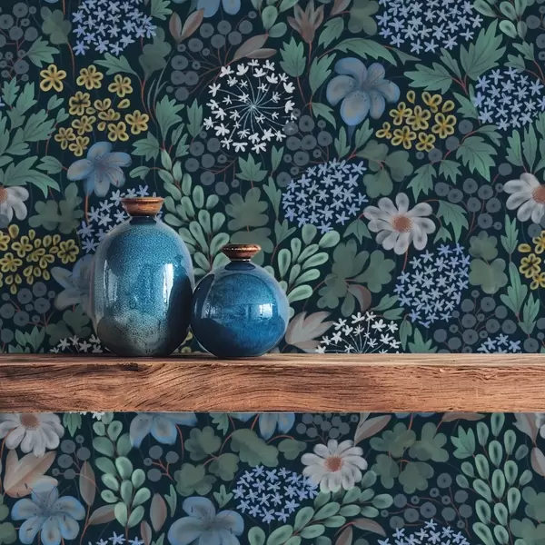 Tapeet Öine aed siniste liiliate, marjade ja loodusliku rohelusega Nr. a00996