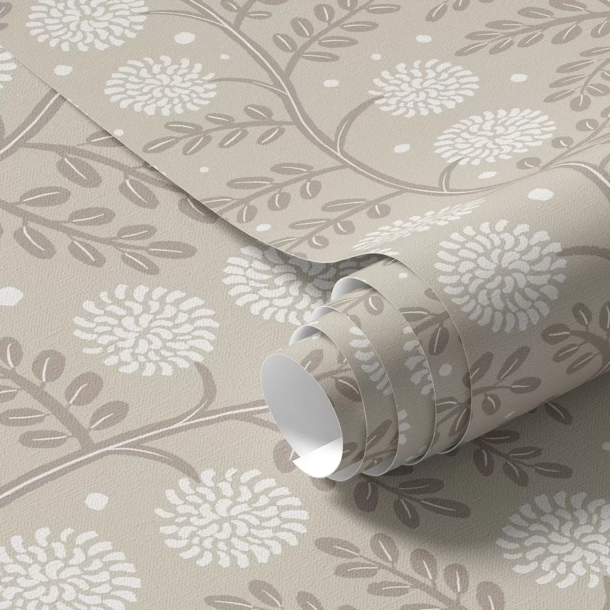 Tapeet Beežid varred valge kohevate õitega ja pehmetega täppidega Nr. a00997