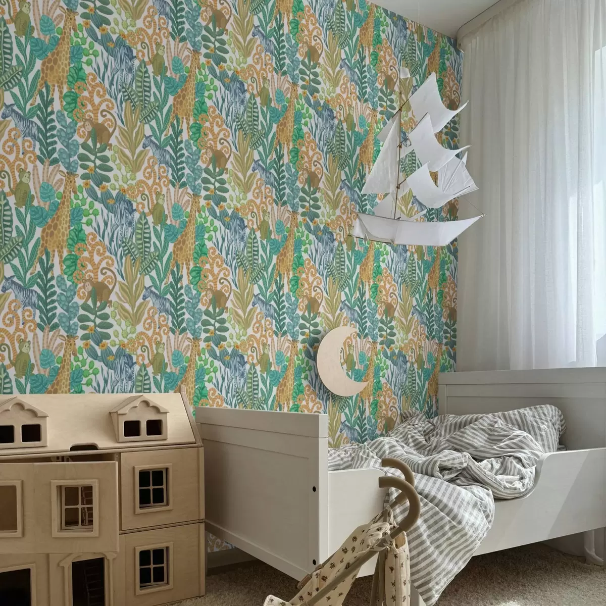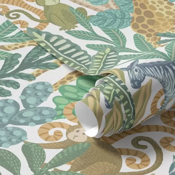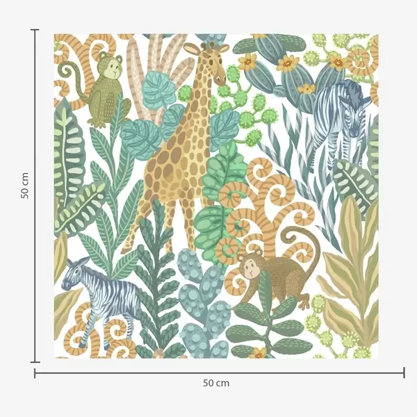 Tapeet Rõõmsameelsed savanni loomad lehtede keskel valgel taustal Nr. a01000