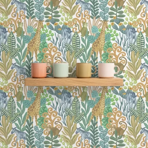 Tapeet Rõõmsameelsed savanni loomad lehtede keskel valgel taustal Nr. a01000