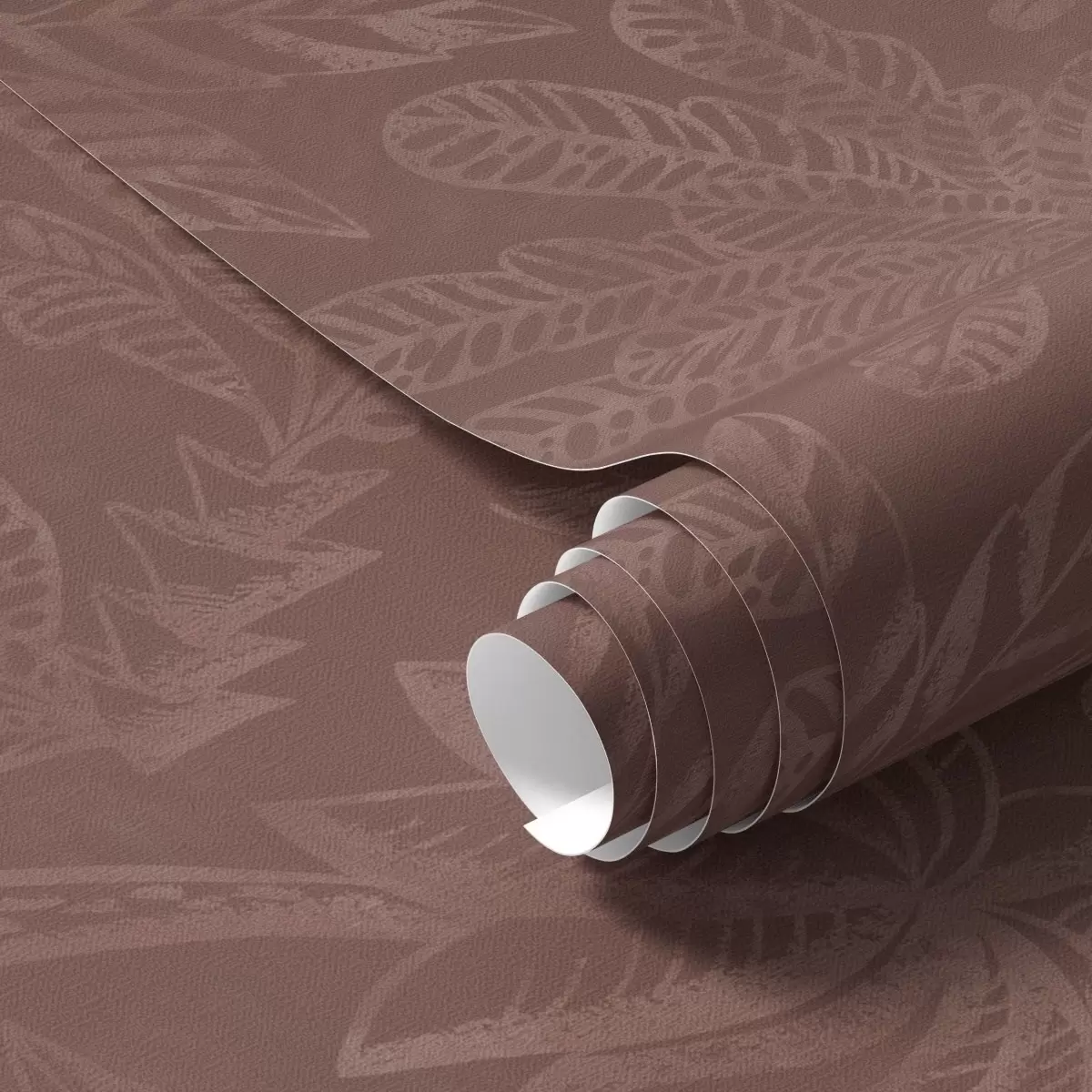 Tapeet Tekstuuriga troopilised lehed sügavpunastes terrakotta toonides Nr. a01001v2