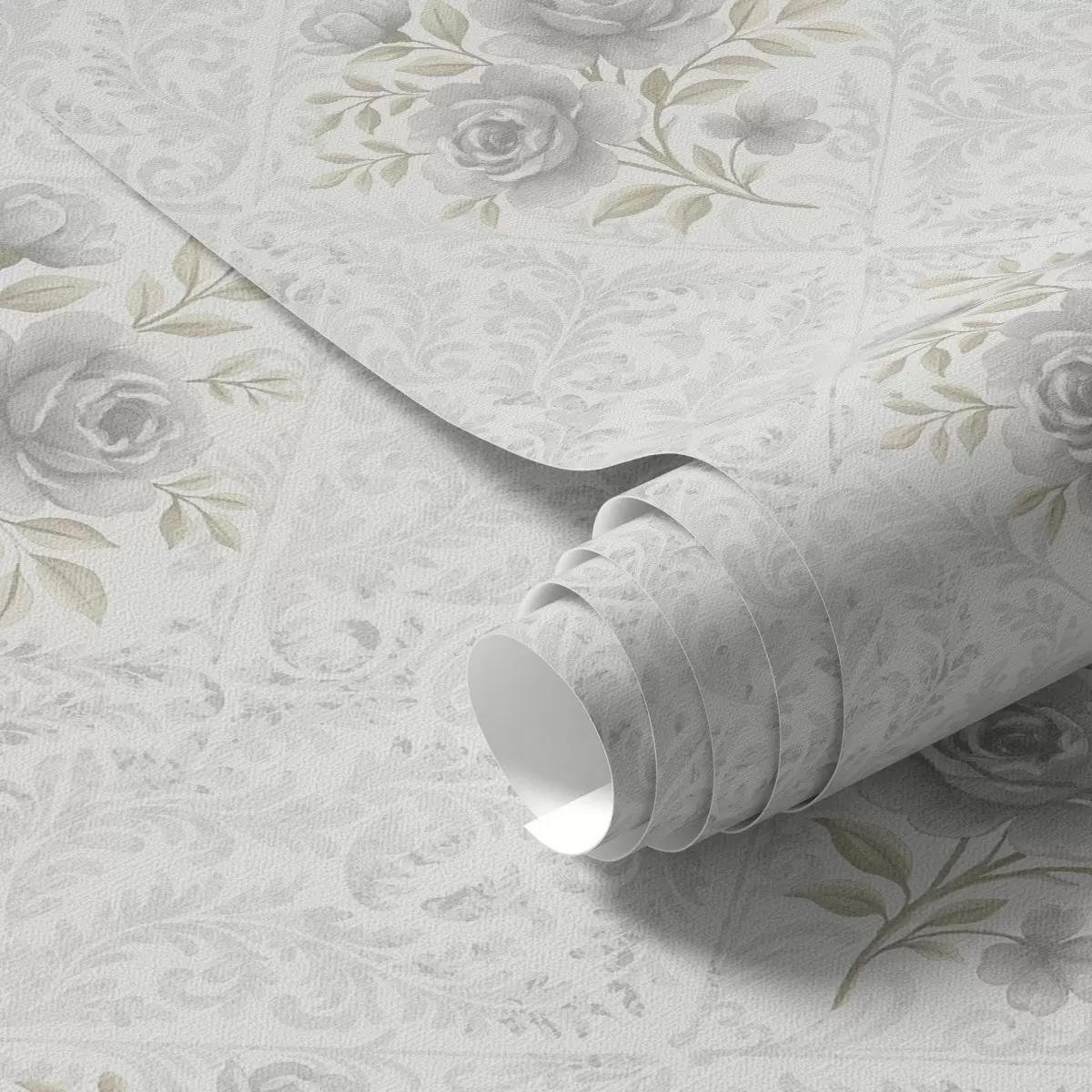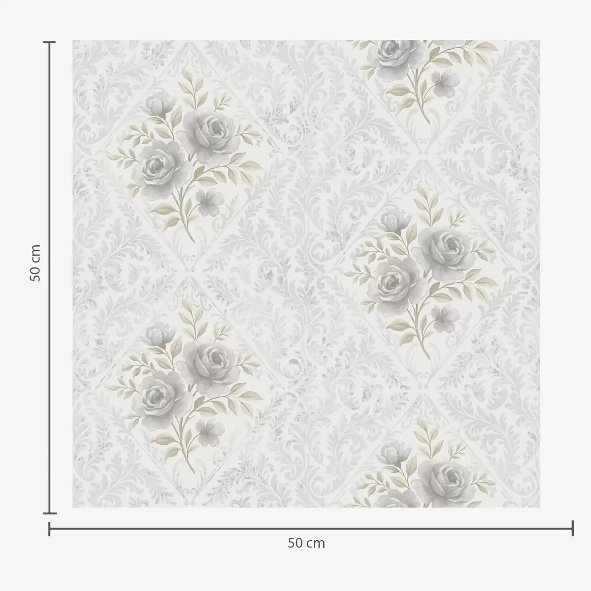 Tapeet Hele damastmustriga hallid roosid pehmetes rombides Nr. a01024