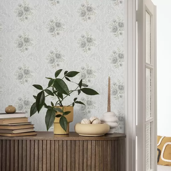 Tapeet Hele damastmustriga hallid roosid pehmetes rombides Nr. a01024