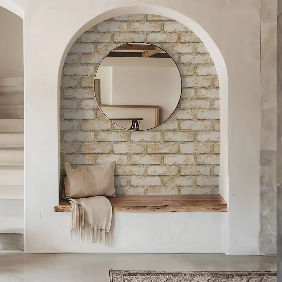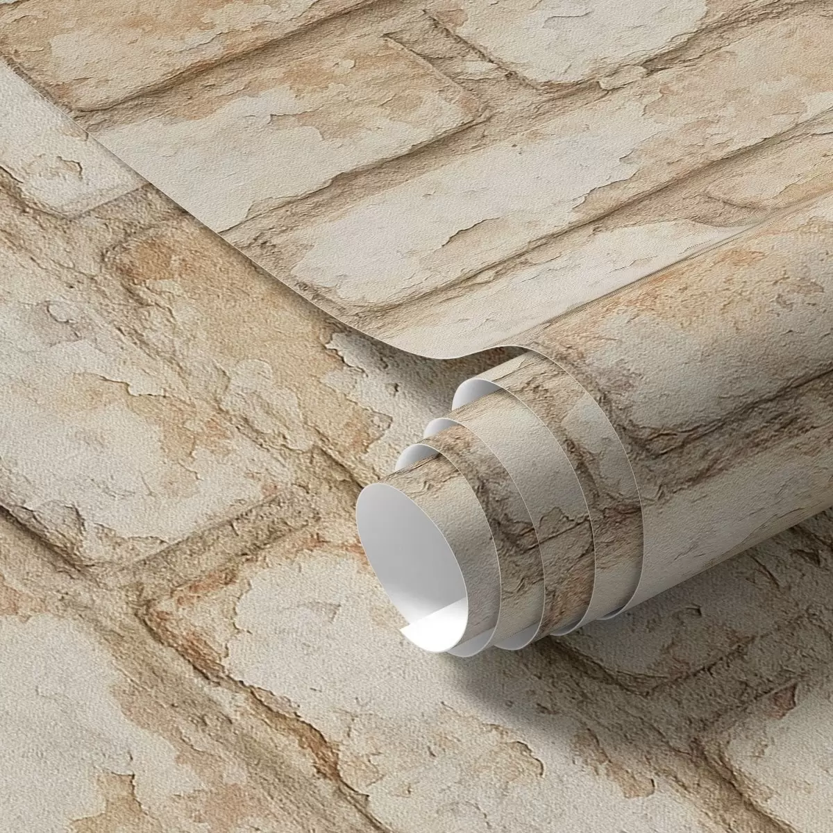 Tapeet Vanandatud helebeež telliskivitekstuur Nr. a01029