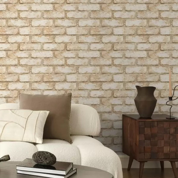 Tapeet Vanandatud helebeež telliskivitekstuur Nr. a01029