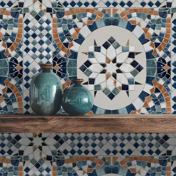 Tapeet Ere Maroko mosaiik sinise-türkiisi toonides Nr. a01043