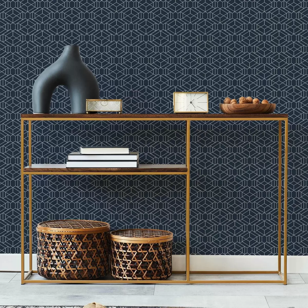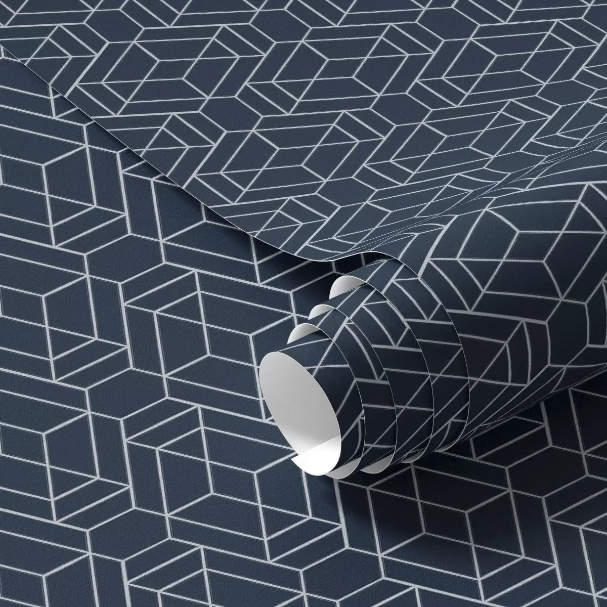 Tapeet Tume sinine geomeetriline kuubikute võre Nr. a01066v1
