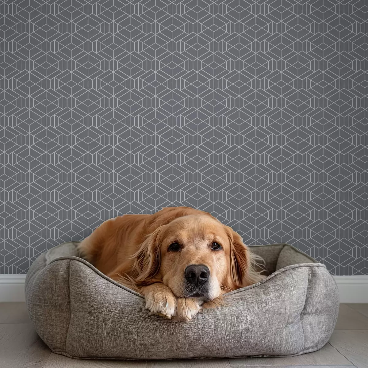 Tapeet Hall taust valgetega kolmemõõtmeliste kuubikutega ruudustikus Nr. a01067v2