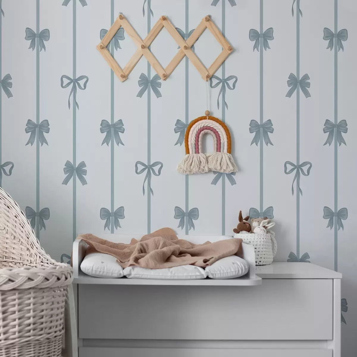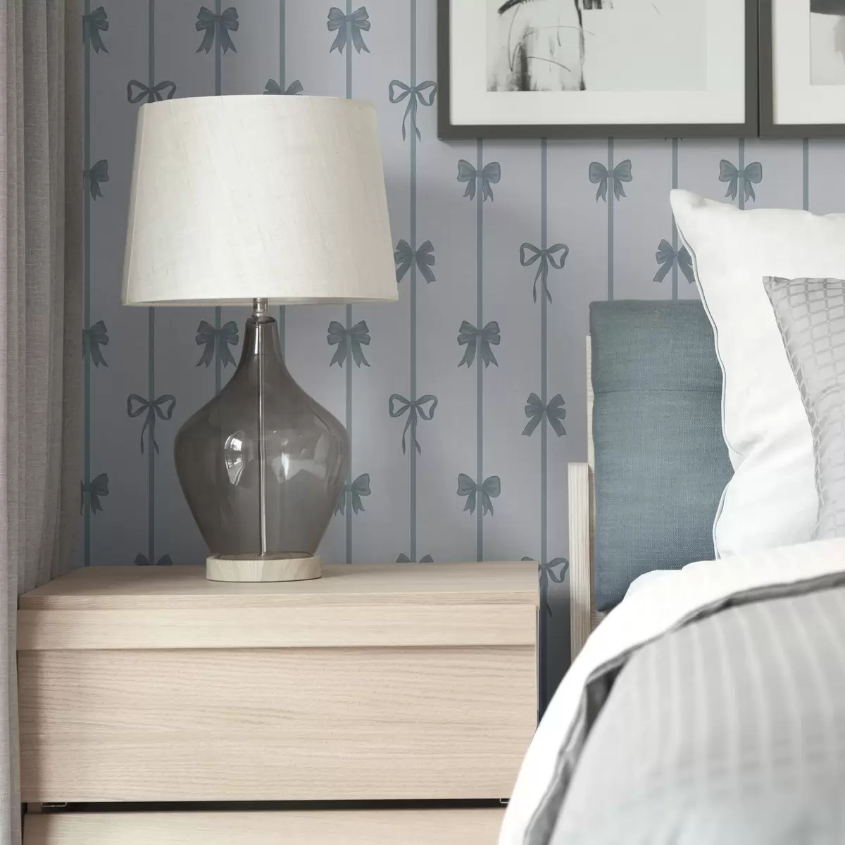Tapeet Sinised lehvid ja paelad heledal taustal Nr. a01074v2