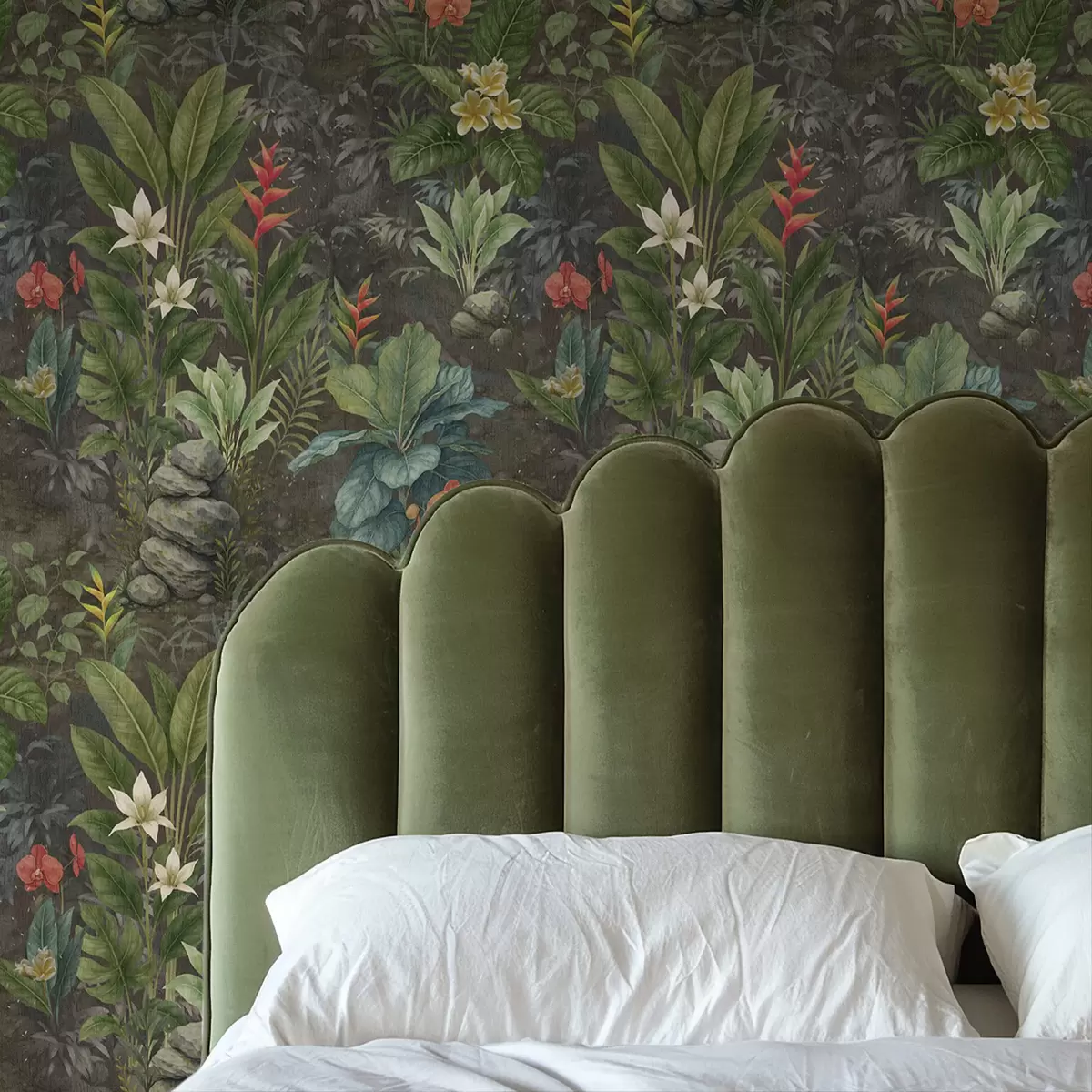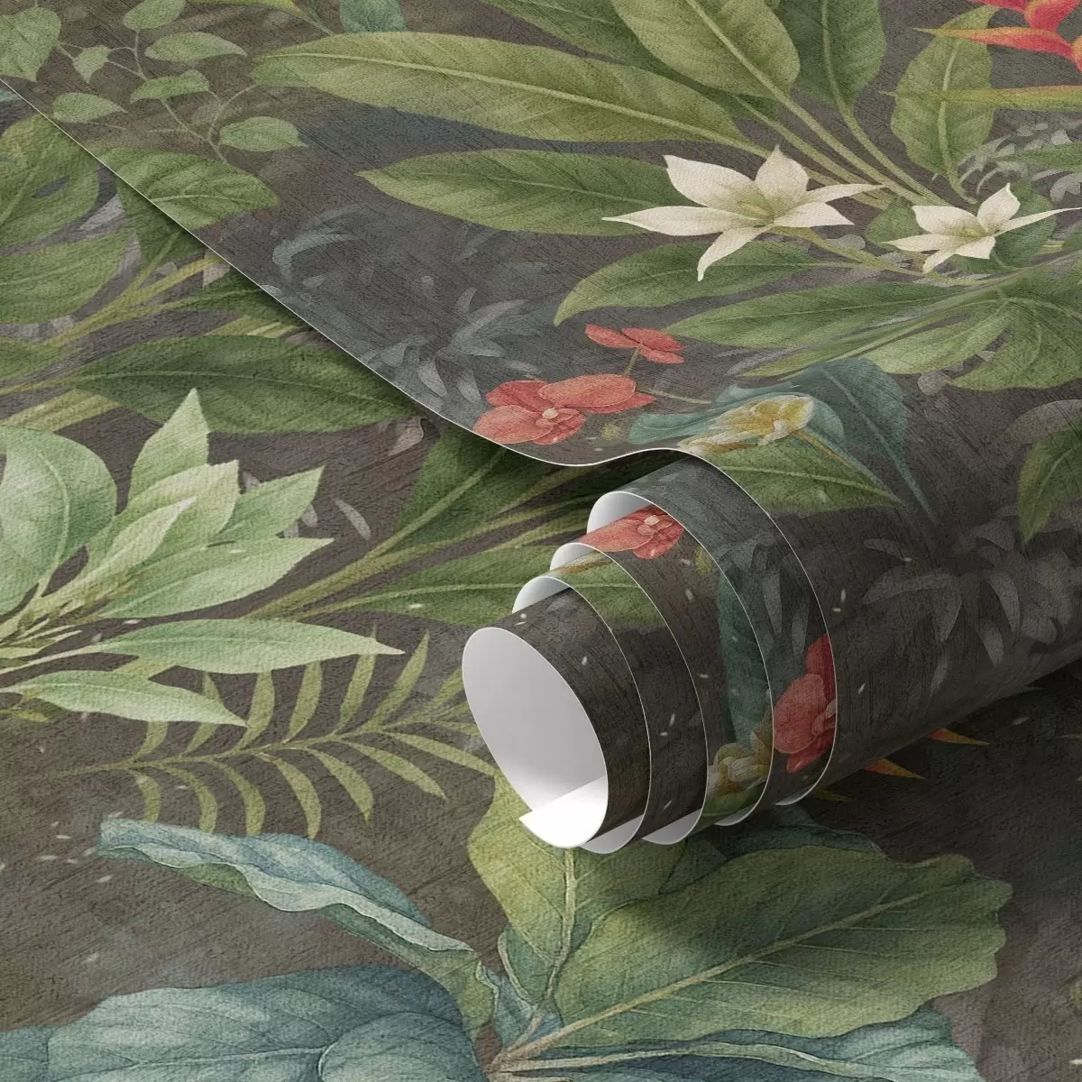 Tapeet Tume troopiline aed erevate lillede ja lehtedega Nr. a01079