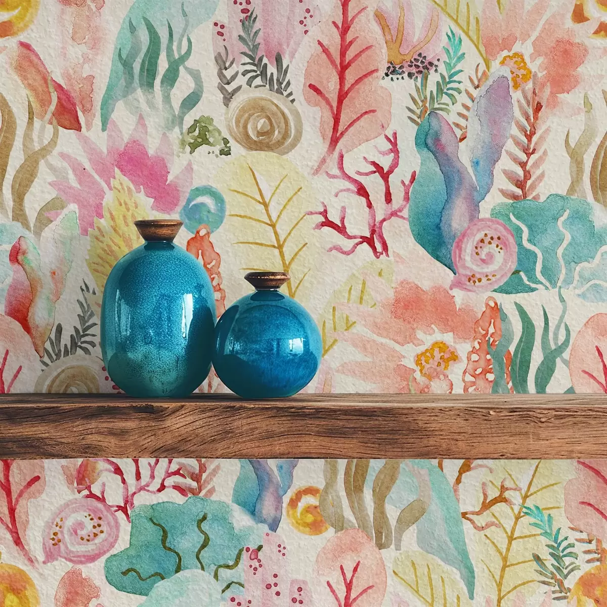 Tapeet Akvarell veealune aed korallide ja merevetikatega Nr. a01083