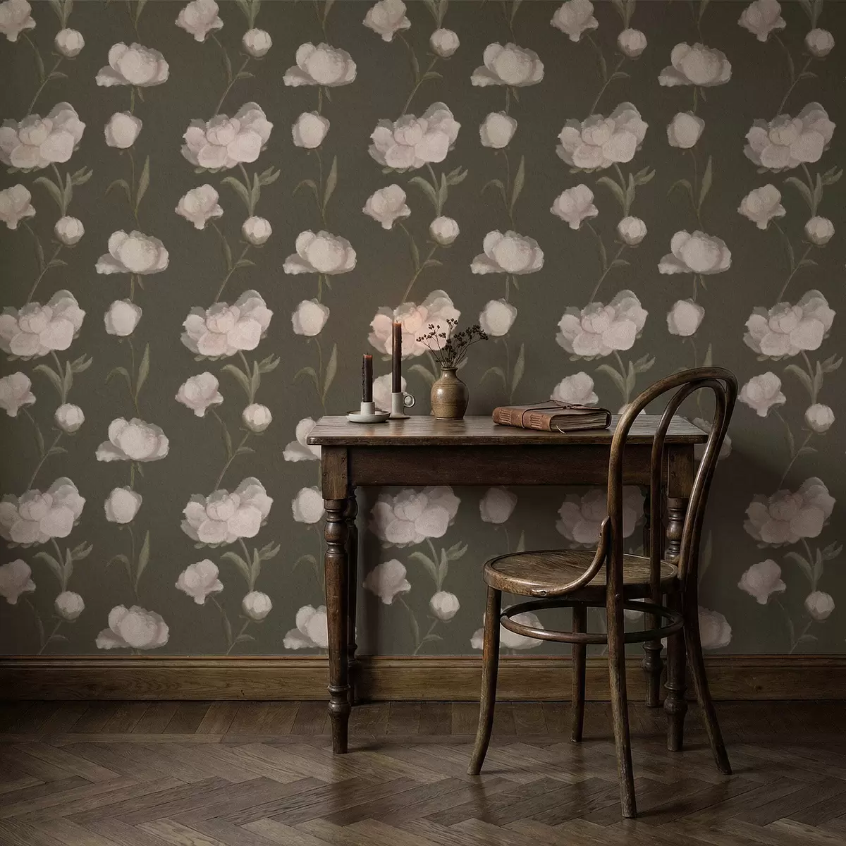 Tapeet Pehmed roosad pioonid tumedal taustal Nr. a01114v1