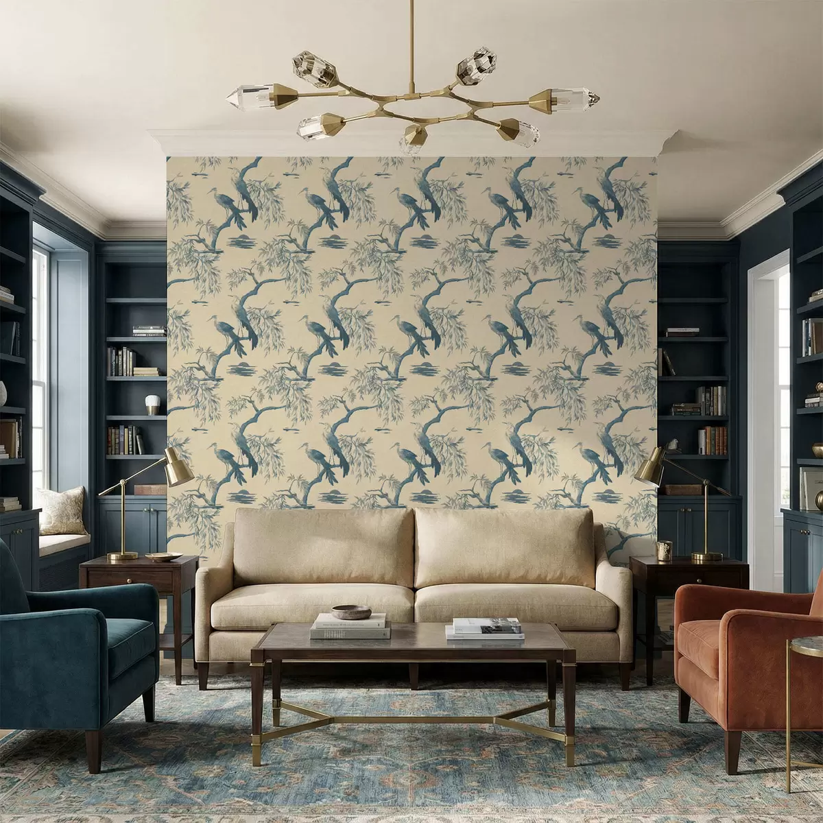 Tapeet Sinistes toonides oksal istuvad linnud Nr. a01116