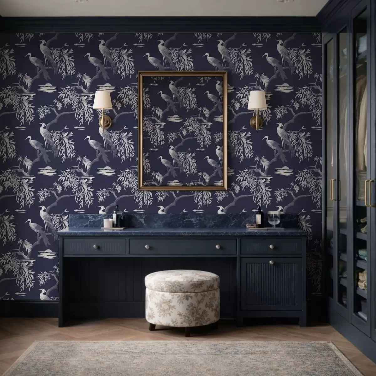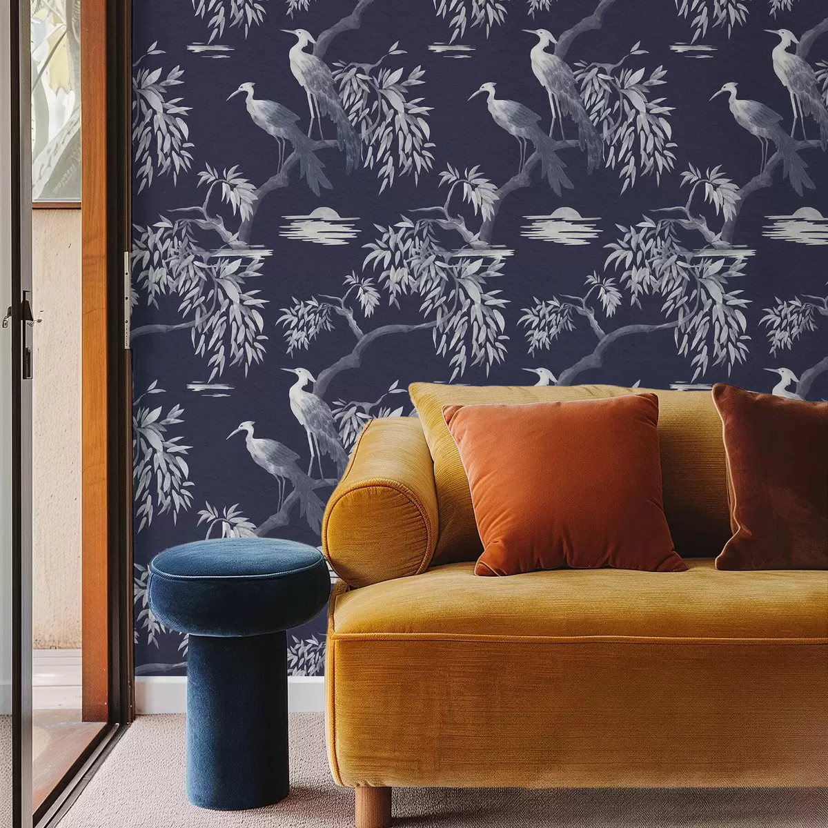 Tapeet Linnud oksal tumesinisel taustal Nr. a01116v1