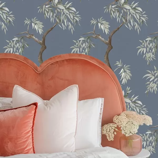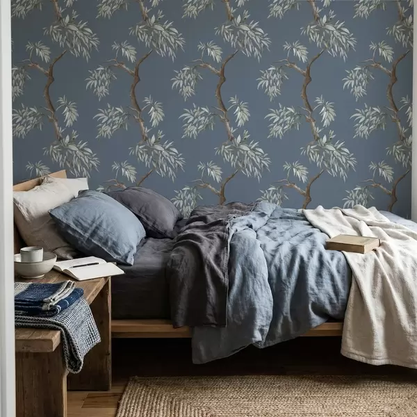 Tapeet Lehtedega puuoks sinisel taustal a01117